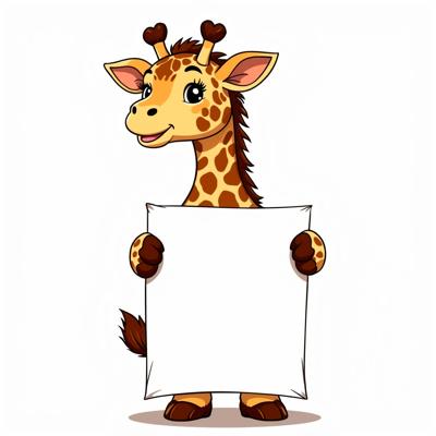 Жирафик красивый жираф держит чистый лист бумаги