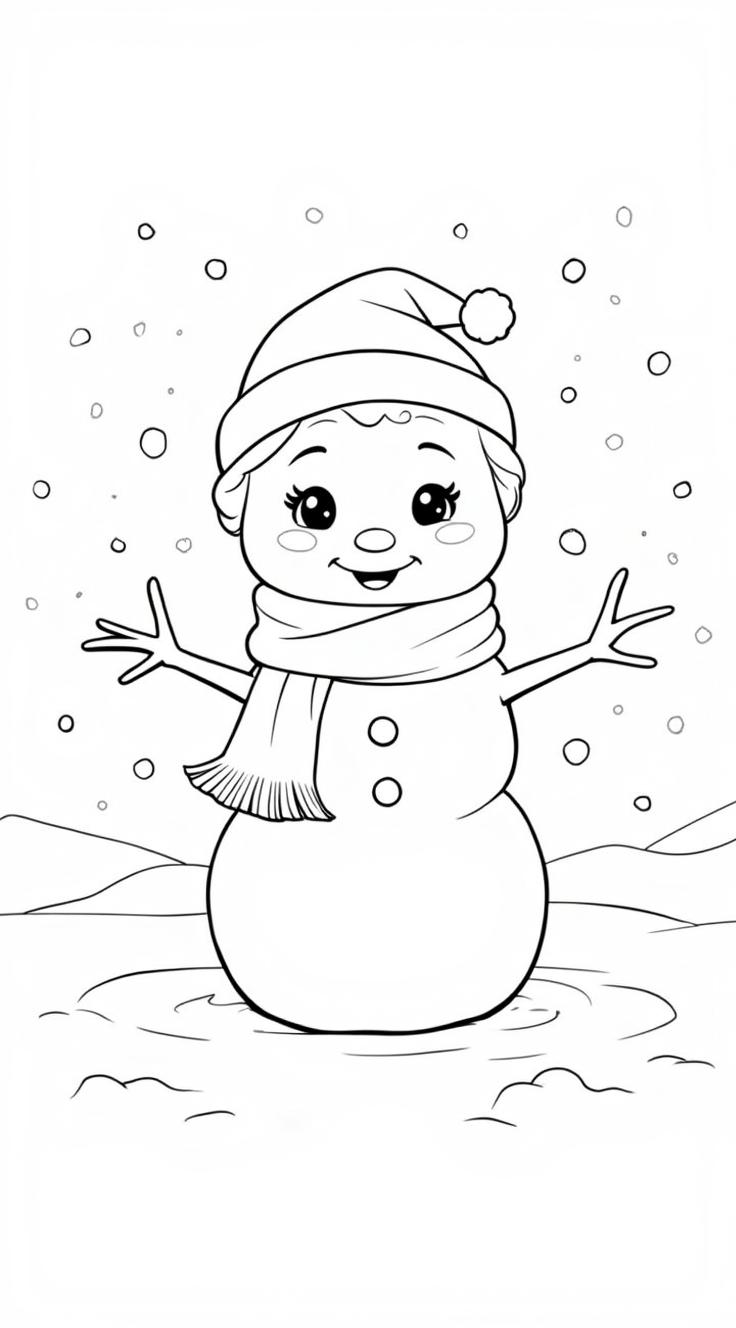 Добрый, красивый снеговик с большим шарфом