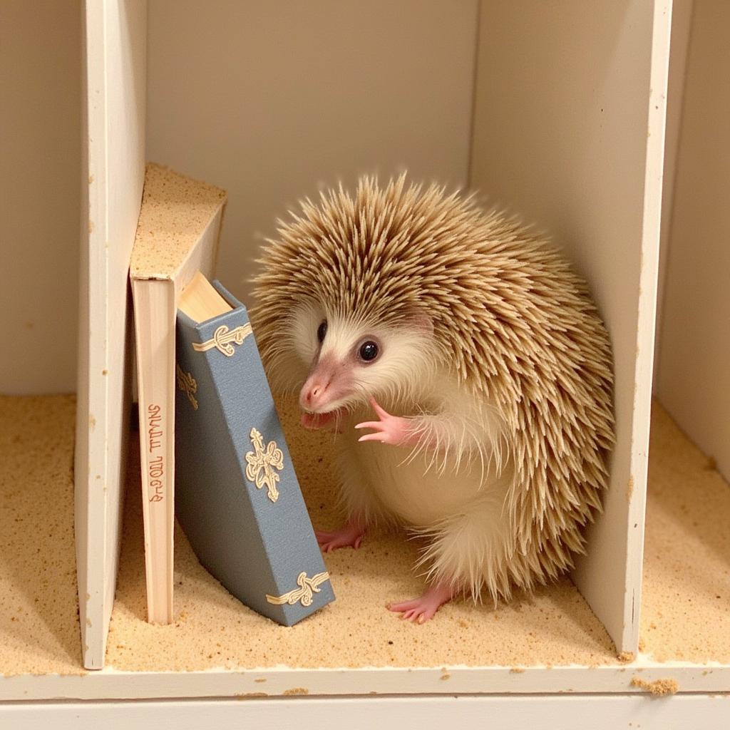 Песочные Ежики торчат из книжных полок по бокам
