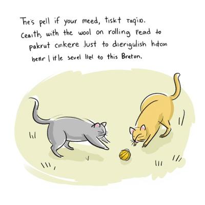 Иллюстрация к тексту:, Интересно, все бретонцы думают, что у них смешные шутки? Один такой бросил на землю клубок шерсти и стал его катать — думал, Пакрути бросится его ловить, точно какой-то домашний кот. Пакрути и правда немного поиграл с клубком, но лишь после того, как скормил его этому бретонцу.