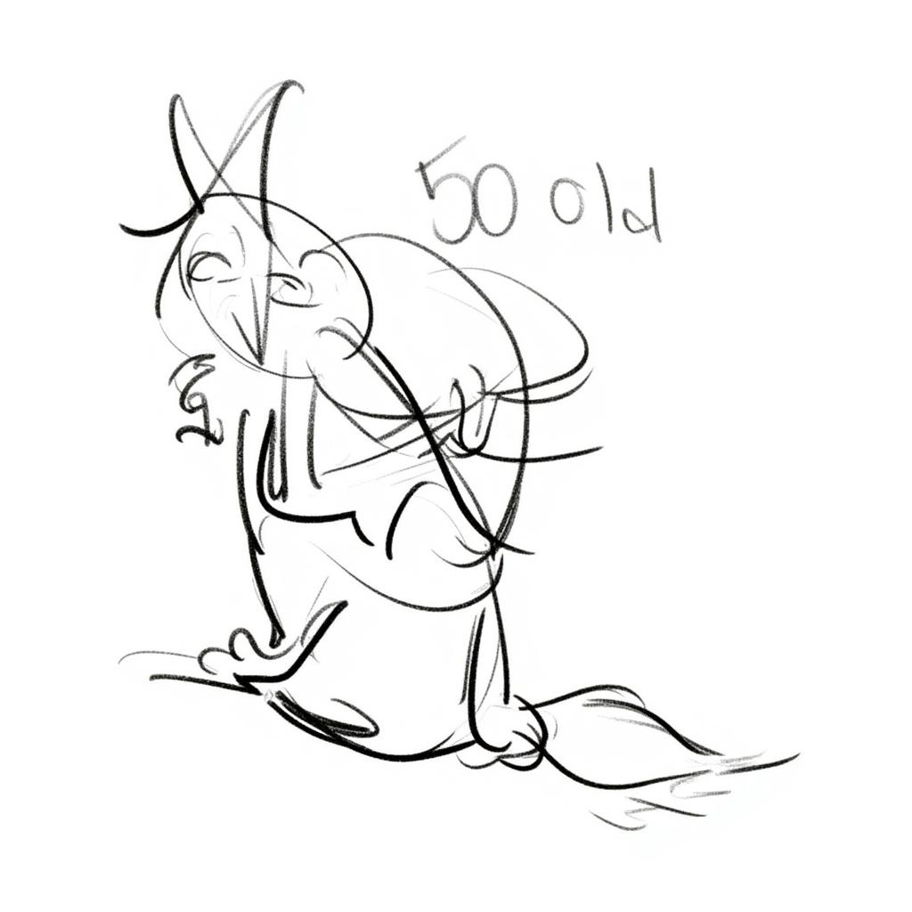 на переднем фоне ведьма на метле на заднем фоне надпись 50 лет! с новой строки Полёт нормальный:)