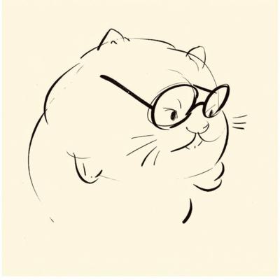 подпись перьевой ручкой ввиде пухлого котика в очках и довольной рожицей, сощюриными глазками будто нарисованный не отрывая руки.