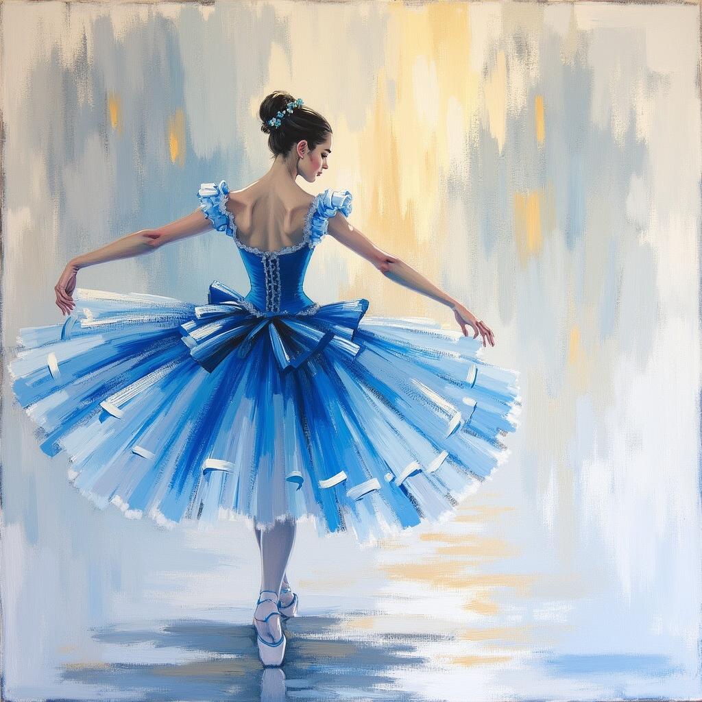 снова вижу голубой далёкий свет, Пpекpасным пpинцем мне является балет, Он позолоченную туфельку даёт, И за собою в миp загадочный ведет,, , Масло, мелкие мазки, мастихин, фактурно, эскиз, штрихи тушью, динамично, приглушенная палитра, белый на белом, золотистый, голубой, абстрактный импрессионизм, , Альфонс Муха Николай Фешин, восторженный,, прекрасный принц, протягивает туфельку.