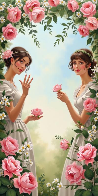 Festive composition for March 8: lush floral background in spring hues (pastel pink, green and white). White-skinned women of different ages cautiously peek out from both sides of the frame, their faces lit up with warm, sincere smiles. Some are waving their hands in greeting, others are holding bouquets of seasonal flowers (tulips, mimosas, hyacinths). The atmosphere is joyful and festive, expressing appreciation and recognition ("Well done!"). Soft diffused lighting creates a gentle glow. Style: Illustration, High detail, 4K