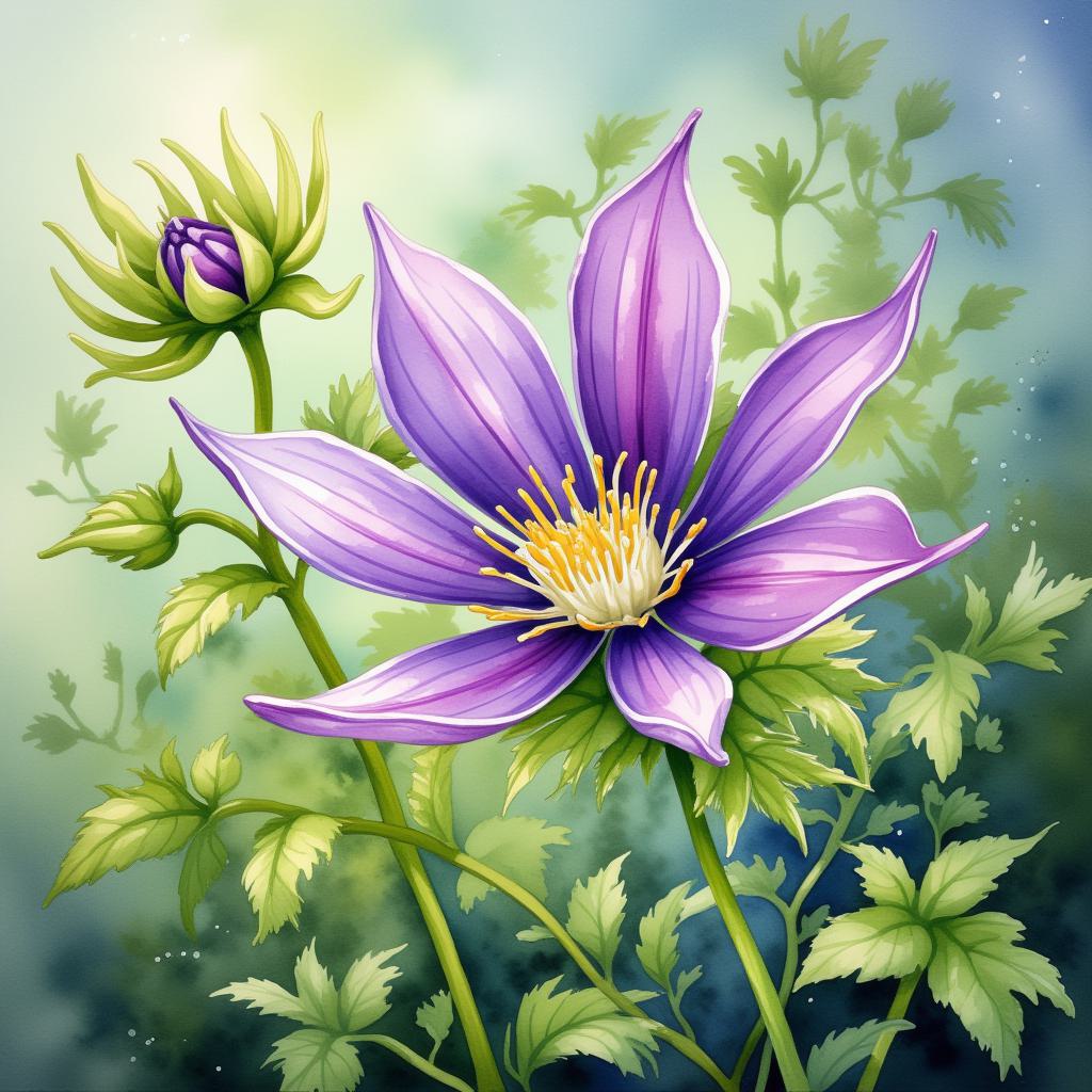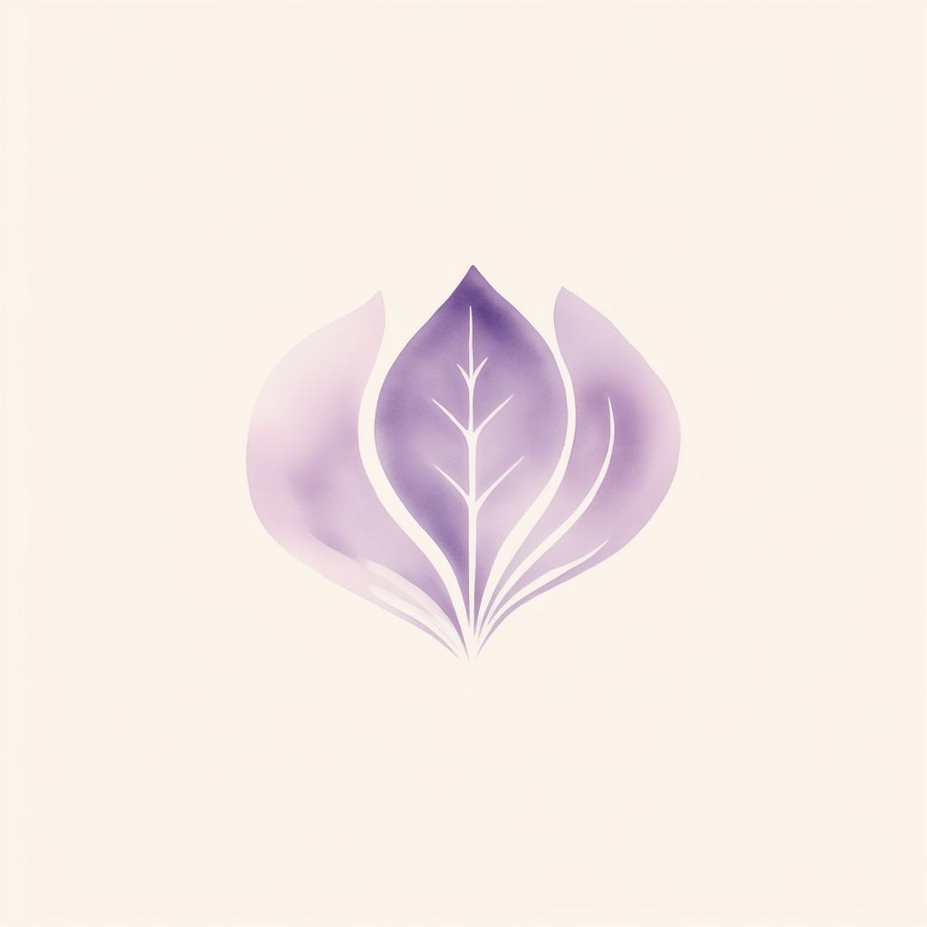 Фон — характерный вертикальный градиент: верхняя часть в нежном сиреневом (#e1c0f5), плавно переходящем в кремовый (#fae4cd) к низу. В центре композиции, под текстовым блоком, расположен главный графический элемент: стилизованное изображение раскрывающегося листа или мягкой волны, символизирующее бережное, естественное раскрытие и переход. Элемент выполнен тонкими полупрозрачными линиями и лёгкой заливкой: контур — #c5a8e5, внутренние акценты — #a5d3f5 и #fdbcc0 с низкой непрозрачностью.