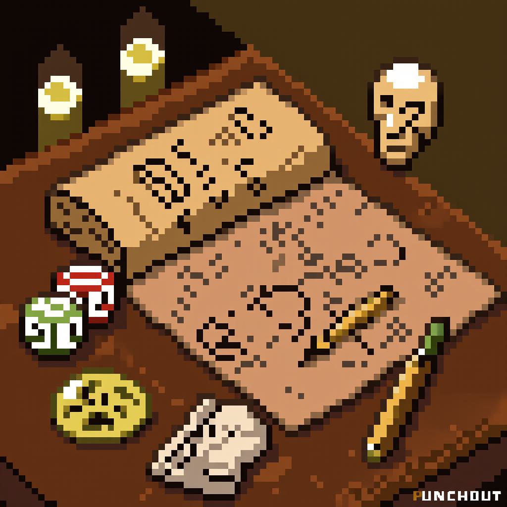 Иллюстрация в тёплом ламповом стиле, натюрморт на деревянном столе. На столе: старинная книга правил, несколько игральных кубиков (d20, d6), перьевая ручка на пергаменте, карта сокровищ, три символа: золотая монета (для победителя), театральная маска (для артиста), чертёж с линейкой (для реалиста). Рядом стоит дымящаяся кружка чая. Мягкий вечерний свет от настольной лампы, уютная атмосфера. Стиль иллюстрации, лёгкая небрежность, тёплые тона.