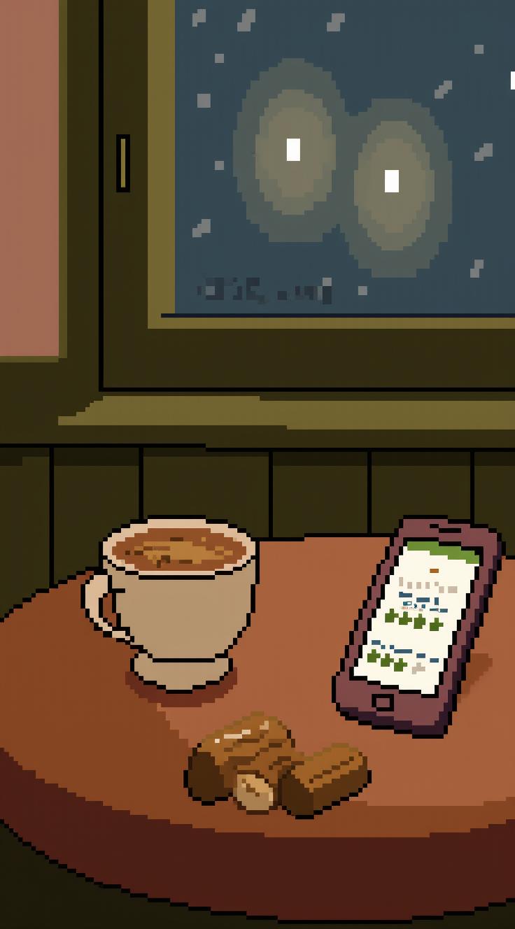 Фотографичная обложка книги. Тёплая, уютная атмосфера осеннего кафе. На деревянном столе — чашка кофе с корицей, рядом лежит смартфон. На экране телефона — открытый отзыв на Яндекс Картах, видны звёзды рейтинга и текст. На заднем плане — размытое окно с каплями дождя и мягкий свет уличных фонарей. Лёгкий пар поднимается над чашкой. Название книги крупно: «Кликни себя сам 2.0». Подзаголовок мельче: «Дневник человека, который перестал кликать и начал быть». Стиль: тёплый, уютный, вдохновляющий. Цветовая гамма: кофейные оттенки, золотистый, мягкий зелёный. Без людей.