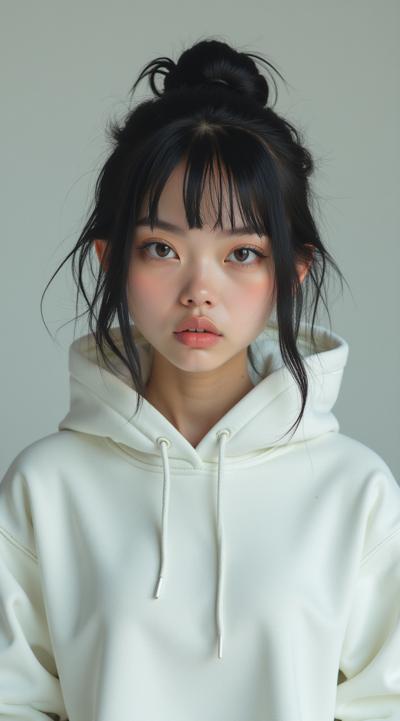 Хорошо, вот промт с добавлением ФИО:, "Женщина-андроид, выглядящая как милая, молодая девушка с именем София Александровна Смирнова. У неё умные, но добрые глаза, мягкое освещение, короткие или средней длины волосы, современный, элегантный, но неброский стиль. Атмосфера: спокойствие и мудрость. Качество: фотореалистичное, высокий уровень детализации.",