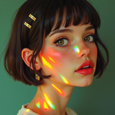 Хорошо, вот промт с добавлением ФИО:, "Женщина-андроид, выглядящая как милая, молодая девушка с именем София Александровна Смирнова. У неё умные, но добрые глаза, мягкое освещение, короткие или средней длины волосы, современный, элегантный, но неброский стиль. Атмосфера: спокойствие и мудрость. Качество: фотореалистичное, высокий уровень детализации.",