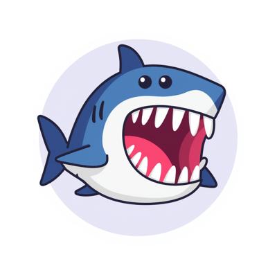 Иконка в казуальном мультяшном стиле: открытая пасть акулы с большими белыми зубами. Стиль милый, яркий и дружелюбный, не пугающий. Зубы крупные и четкие, пасть слегка карикатурная, с насыщенными голубыми и синими оттенками для кожи акулы, внутри пасть ярко-красная. Дизайн цветной, полированный, легко читаемый с первого взгляда, подходит для слот-игры. На прозрачном фоне, без дополнительных деталей вокруг