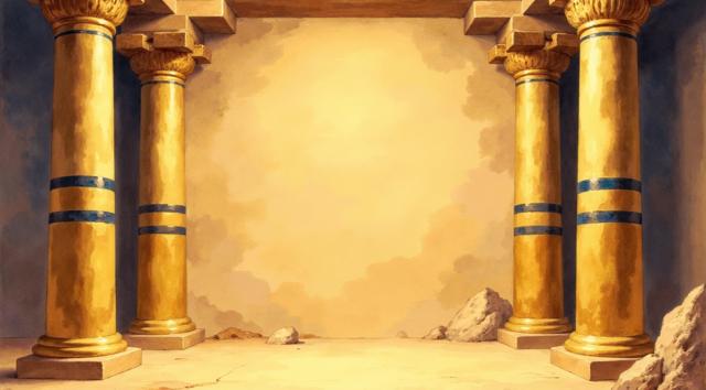 Простая и аккуратная рамка для слота в египетском стиле. Верх и низ — гладкие золотые трубы, блестящие, прямые. Боковые стороны — вертикальные трубы с полосами в стиле скипетра Тутанхамона: золотые и синие полосы, простой декоративный узор. Центр чистый для символов барабана. Лёгкие тени и блеск создают объём. Стиль аккуратный, элегантный, мультяшный, но без грубости.,