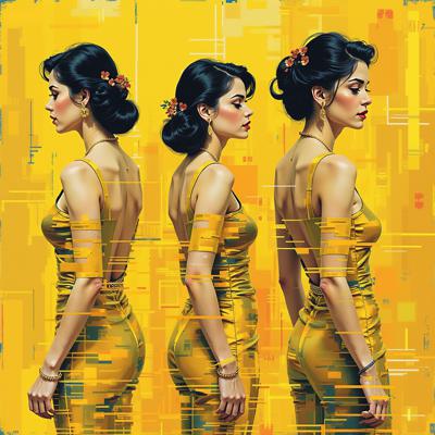абстрактная живопись, созданная в стиле картин Roberto Ferri, которая демонстрирует КОМПОЗИЦИЮ трех ЖЕНЩИН аристократичного вида 1950 Jack Vettriano В Иллюзии движения, МНОГОДЕТАЛЬНОЙ КОМПОЗИЦИИ В ВИДЕ переплетения ГИППЕРРЕАЛИСТИЧНОЙ ВЕКТОРНОЙ ГРАФИКИ , фигур и объектов намекая на борьбу с ЖЕНСКИМ подсознанием сюжета. Работы представлены в сюрреалистической перспективе, иллюстрируя полет, вызванный генерацией подсознательной сублимации сознания, в реконструкцию переосознания реальности в ином измерении. СЕРАЯ, КРЕМОВАЯ , СВЕТЛО ТЕРРАКОТОВАЯ, ОХРОВАЯ, ОЛИВКОВАЯ ПАЛИТРЫ,