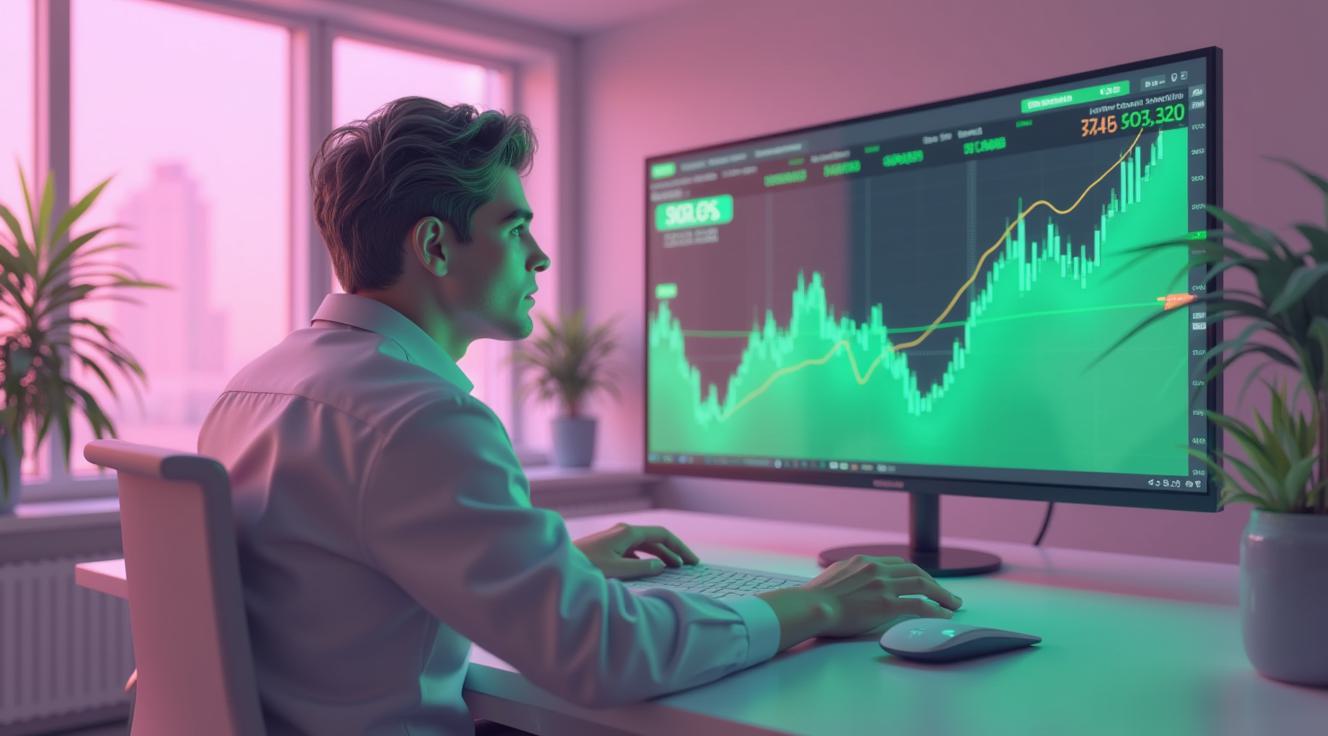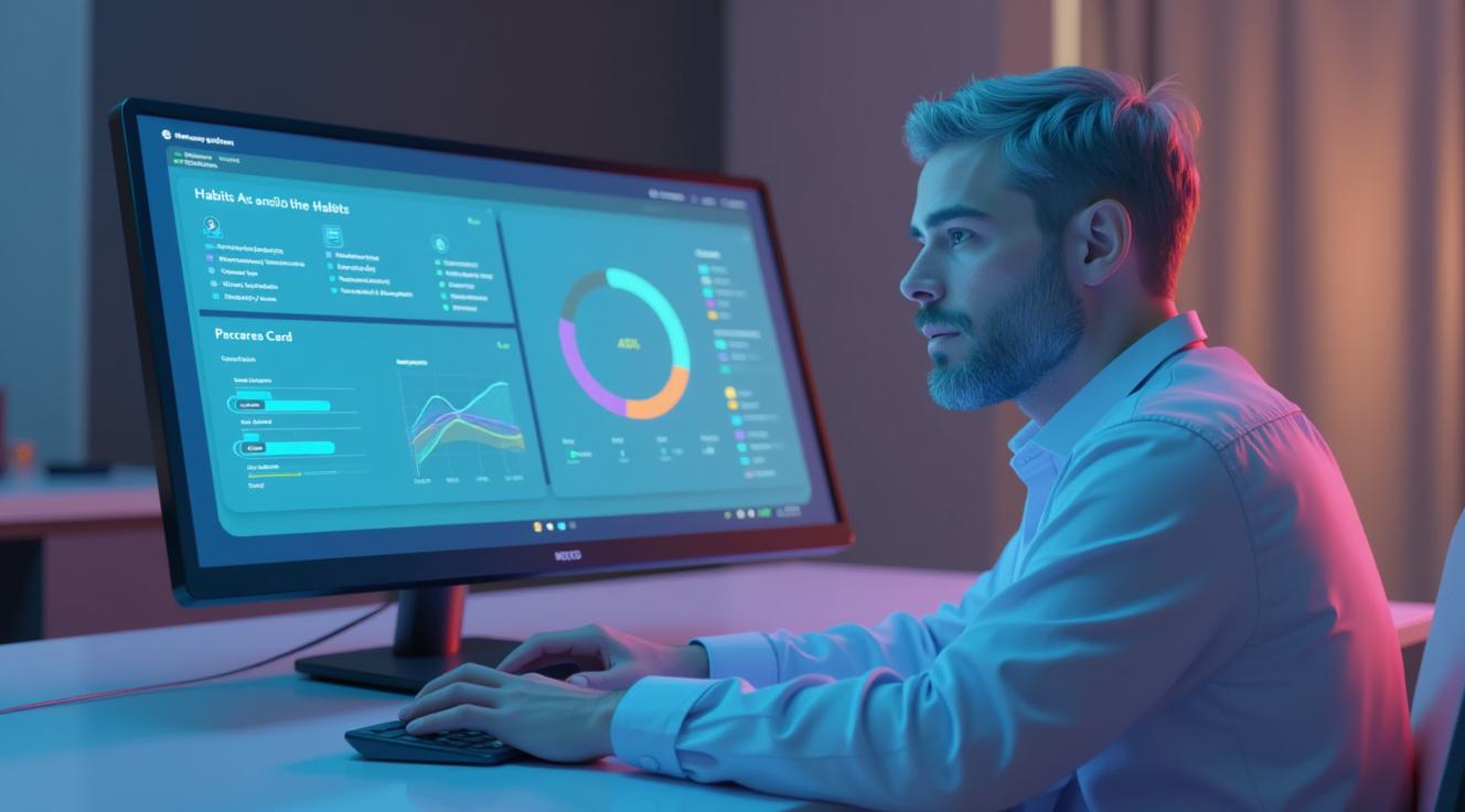 A young man with curly hair, ecstatic expression, wide open mouth, looking at a laptop screen glowing with neon blue and pink light, holographic chat bubbles floating around him with text "ChatGPT" in futuristic font, abstract neural network lines connecting the bubbles, dark cyberpunk background, cinematic lighting, ultra-detailed, 8K, digital art, trending on ArtStation