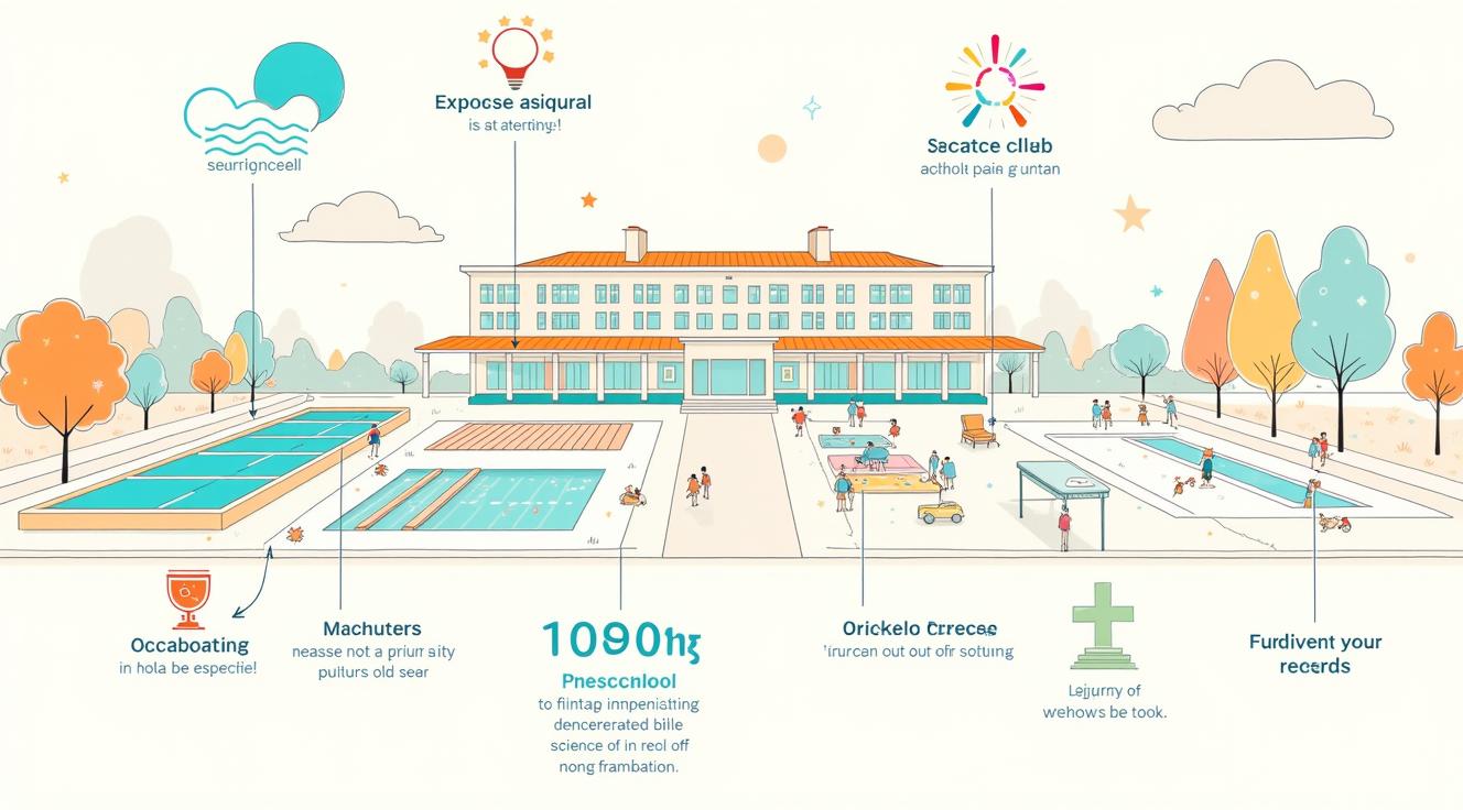 инфографика об инфраструктуре университета. стилизованными значками отмечены бассейн, спортклуб, научный центр, библиотека, музей, санаторий-профилакторий, творческие кружки. также присутствует отдельным блоком историческая информация о первом ректоре университета, мало текста, только несколько значков о периодах её жизни. стилизация под абстрактную географическую карту.