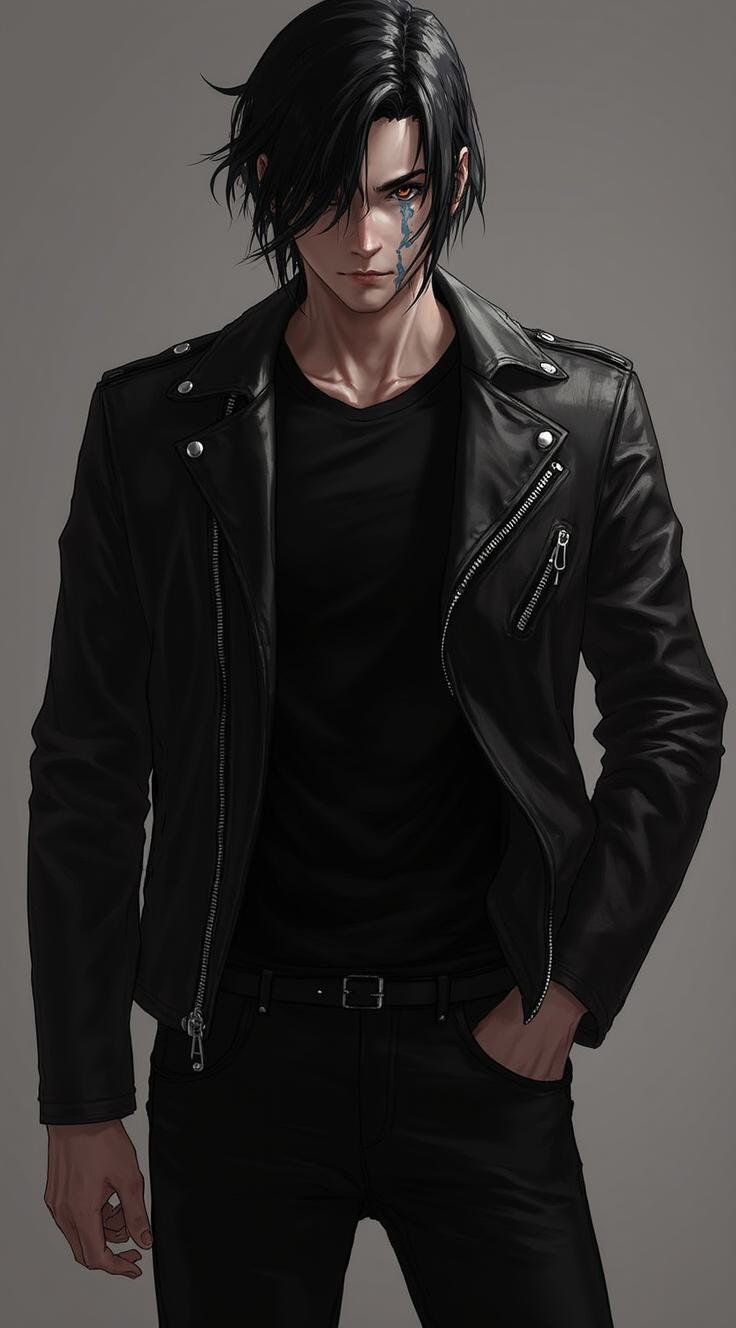 RID: 22 years. Tall, broad shoulders, muscular. Dark disheveled hair, sharp jaw with a scar on cheekbone. Heavy dark eyes, always tense. Worn leather jacket, tight black shirt, combat boots. Looks dangerous even when calm., , HANTER: 24 years. Tall, lean but strong. Short light-brown hair, stubble. Calm grey eyes, observant. Simple flannel shirt, rolled sleeves, worn jeans. Reliable, steady presence. Calloused hands., , ESH: 20 years. Thin, underweight despite trying. Pale skin, dark circles under eyes. Hollow cheeks, nervous energy. Oversized hoodie (MC's), constantly fidgeting with sleeves. Looks fragile but trying.