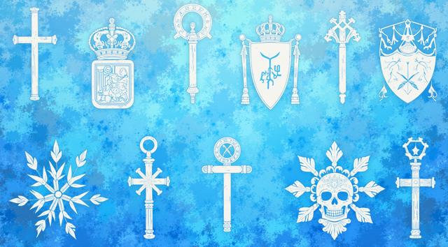 , , На светлом! Ярком сине-голубом неоднородном фоне с , Пастельные подупрозрачные рисунки белым и черным контуром, , , Смысл - отобразить поклонения,, принесение людьми клятв верности ложным иерархиям, , Изобрази у каждого рисунка белым контуром соответствующий символ - религий, королевств, гербов, партий, , Изобрази 10—15 изображений, одно - крупно, на переднем плане, сквозь него на разной удалённость - другие, , Перед каждым авторитетом авторитетом стоит на коленях одним или на двух со склоненной головой произнося клятву,