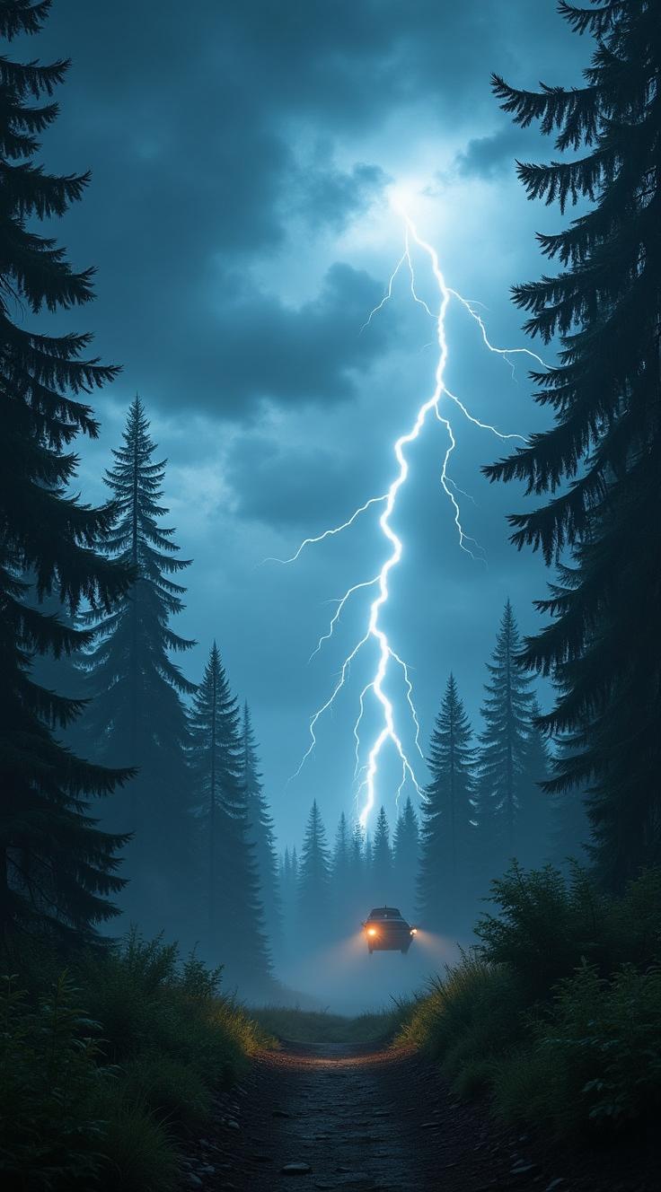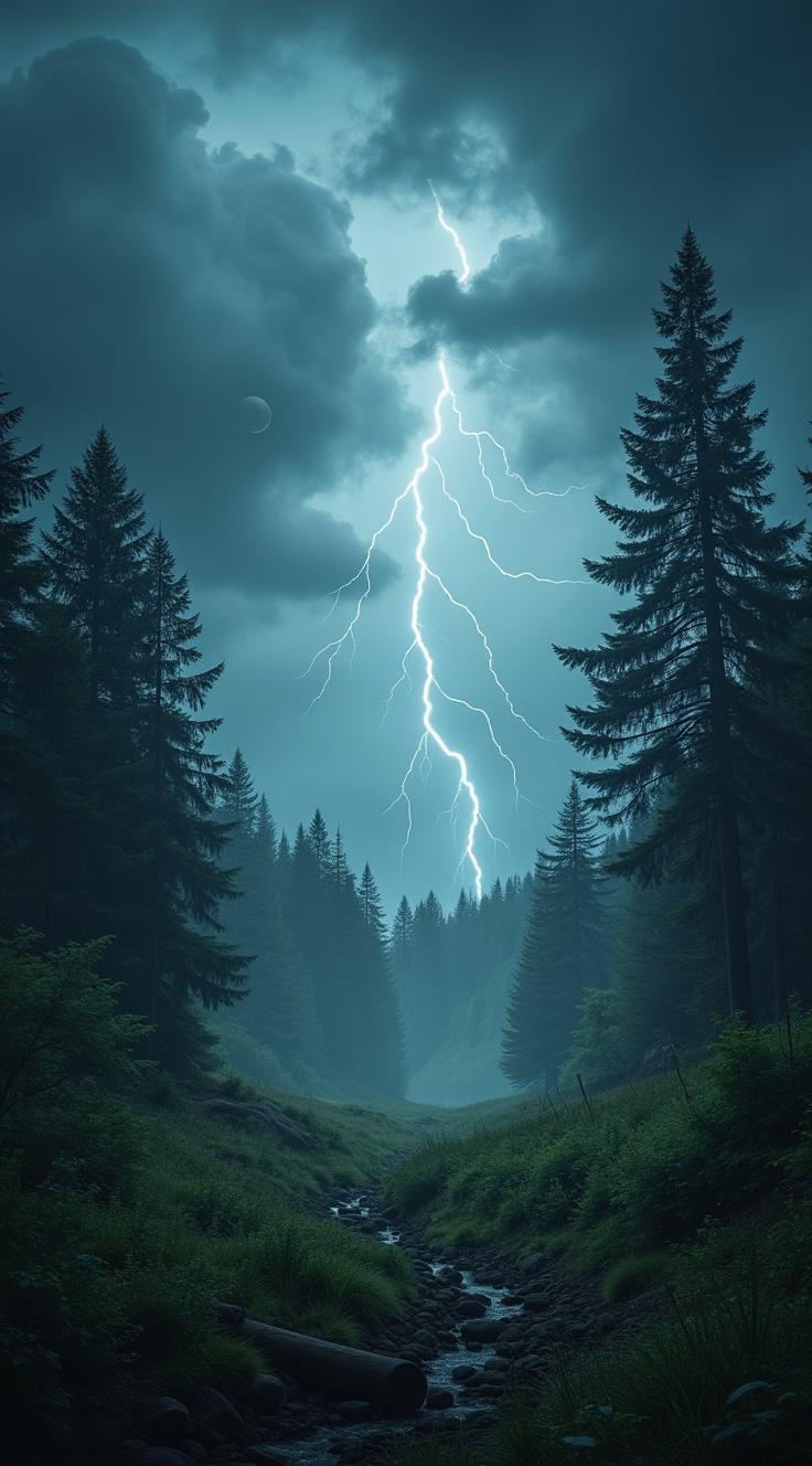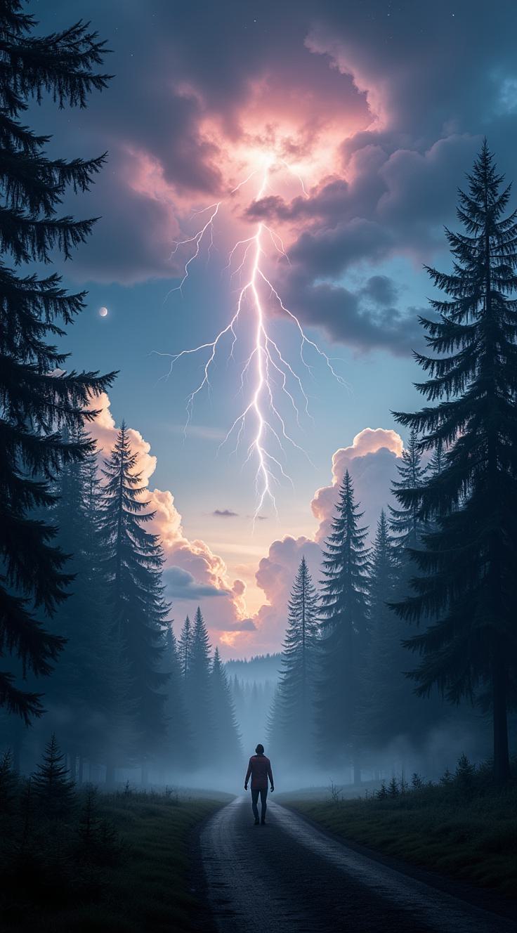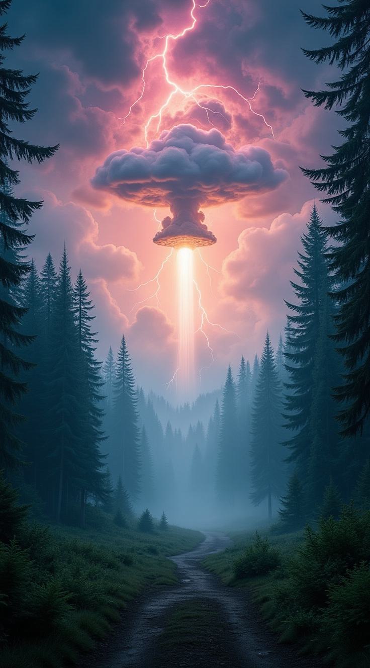 Мокап не нига реклама блокбастер фентези обложка лес с космосом фон впечатляющий гроза небо,