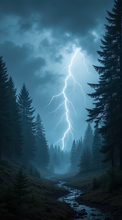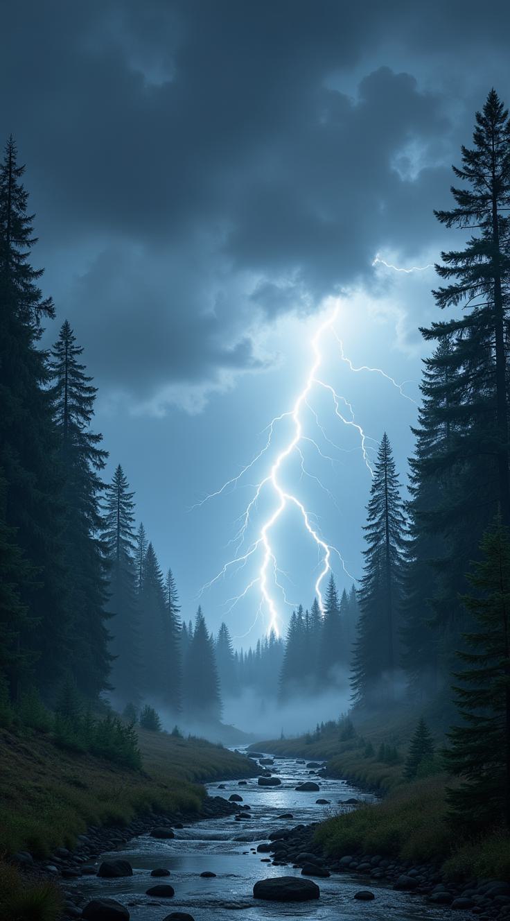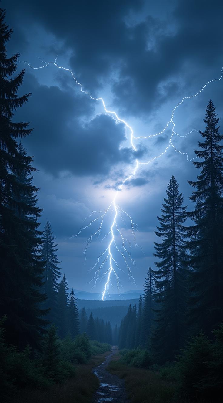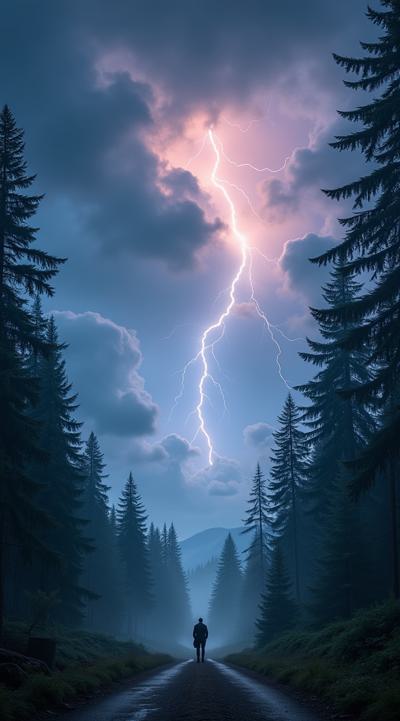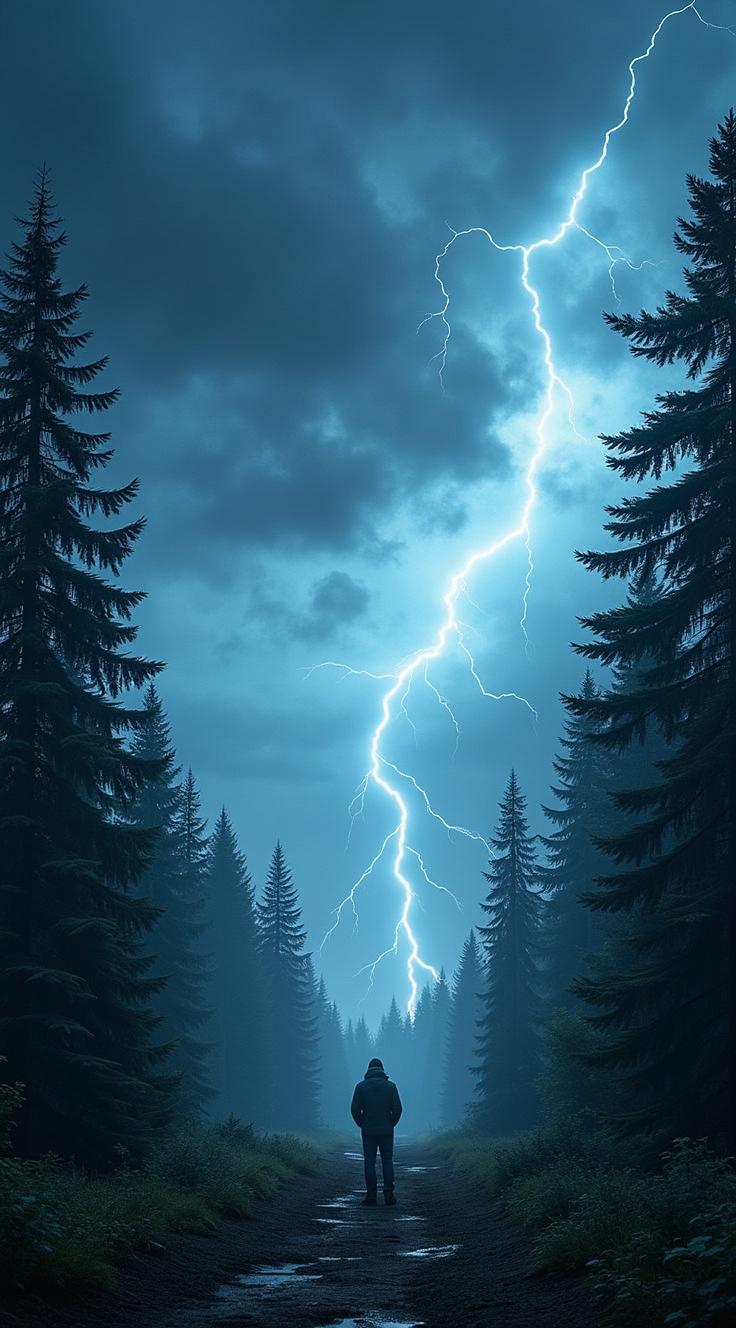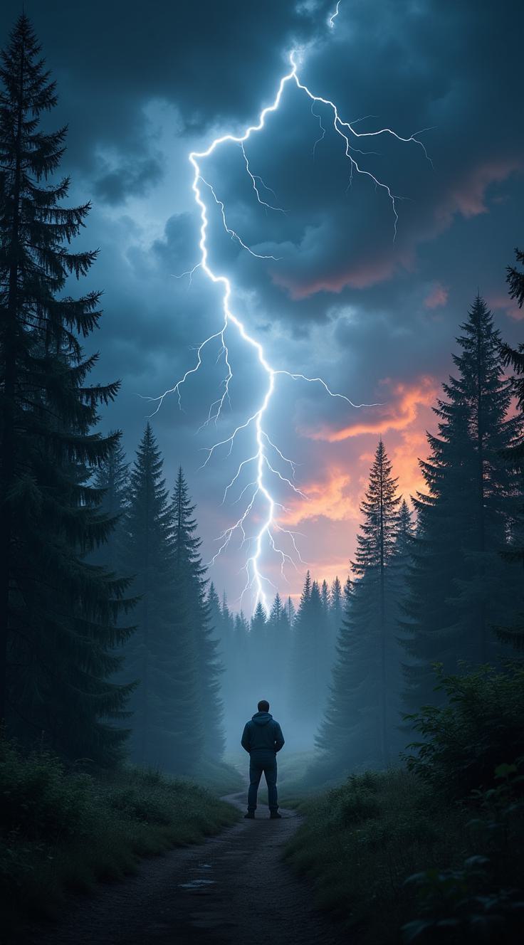 Мокап не нига реклама блокбастер фентези обложка лес с космосом фон впечатляющий гроза небо,