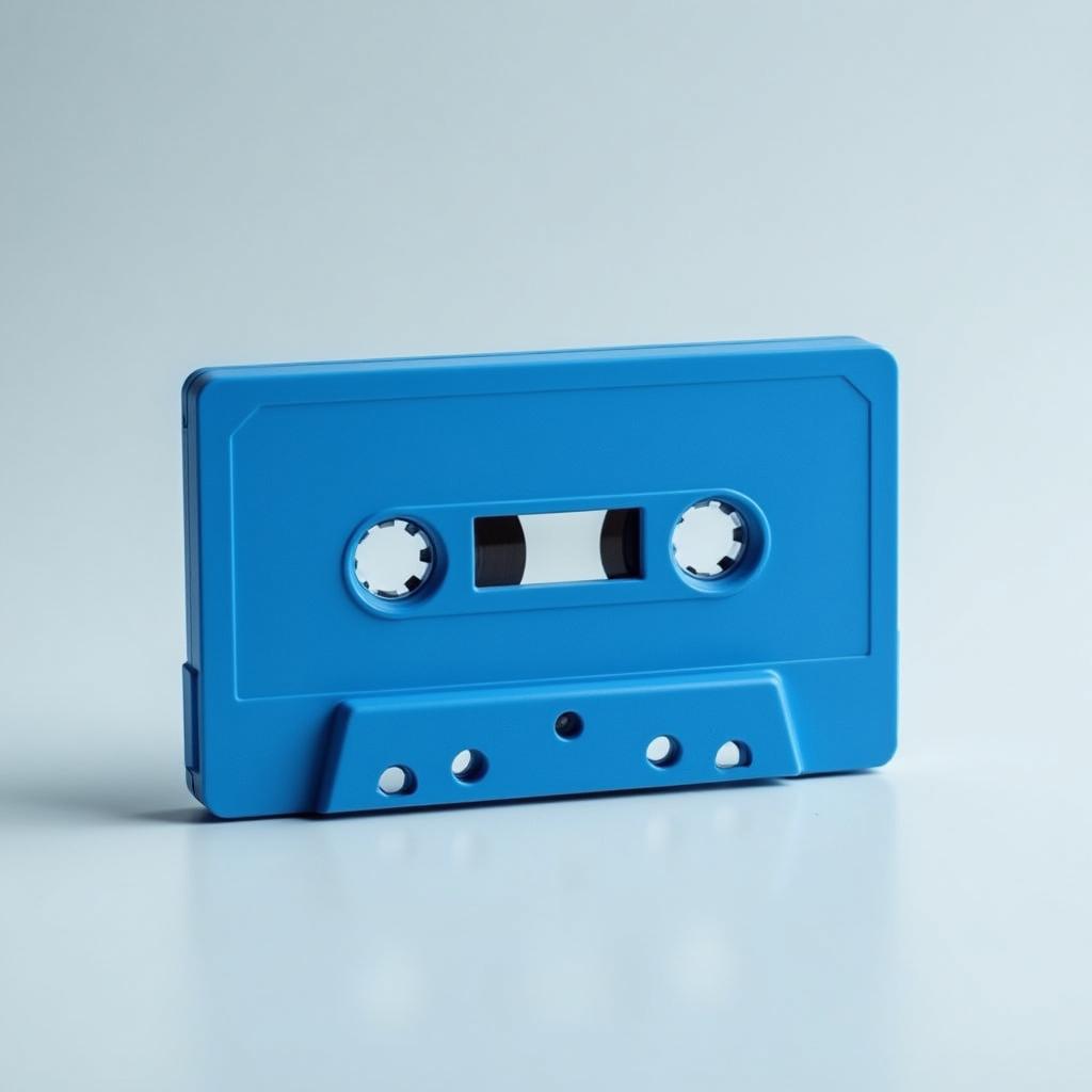Матрешка с бело-красно-синим русским узором гжель. На животе пустое место под логотип. Она лежит на белом фоне. Вид сверху