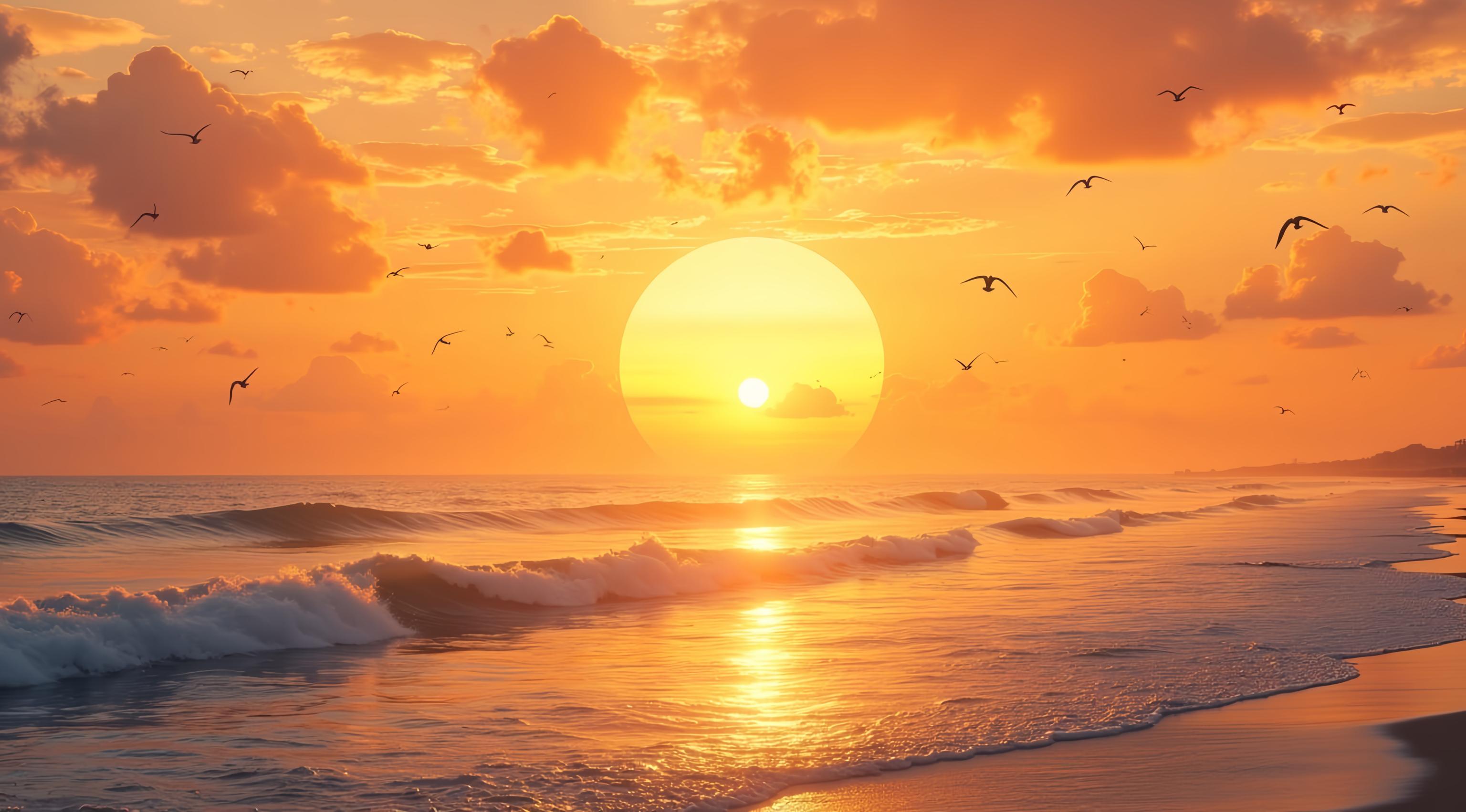 "Album cover artwork, cinematic sunset over the sea, warm golden and orange sky, calm waves reflecting sunlight, silhouettes of seagulls flying in the sky, атмосферное и немного ностальгическое настроение, стиль современного музыкального альбома, мягкий свет, высокая детализация, minimalistic yet emotional composition, typography with Russian text 'Пацаны не стареют' in stylish handwritten or bold modern font, centered or slightly above horizon, aesthetic, 4k, high quality