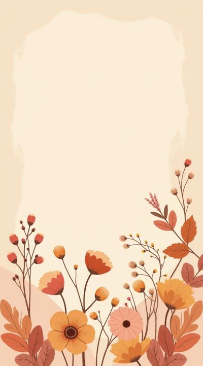 A tasteful and original Mother's Day poster design, no human figures, featuring a warm autumnal floral background with soft golden, terracotta, ochre, and muted rose tones. The composition includes delicate dried flowers, seed pods, and autumn leaves arranged organically, with subtle textures of linen and paper. The overall mood is cozy, gentle, and heartfelt. Bright but not garish colors, elegant typography space left for a message (e.g., "Happy Mother's Day"), cinematic soft lighting, hyper-detailed botanical illustration style, magazine editorial aesthetic