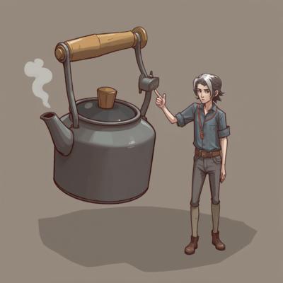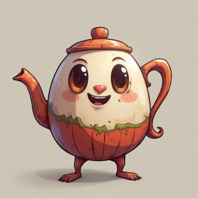 Чайник помощник с глазами и руками, как помощник в игре