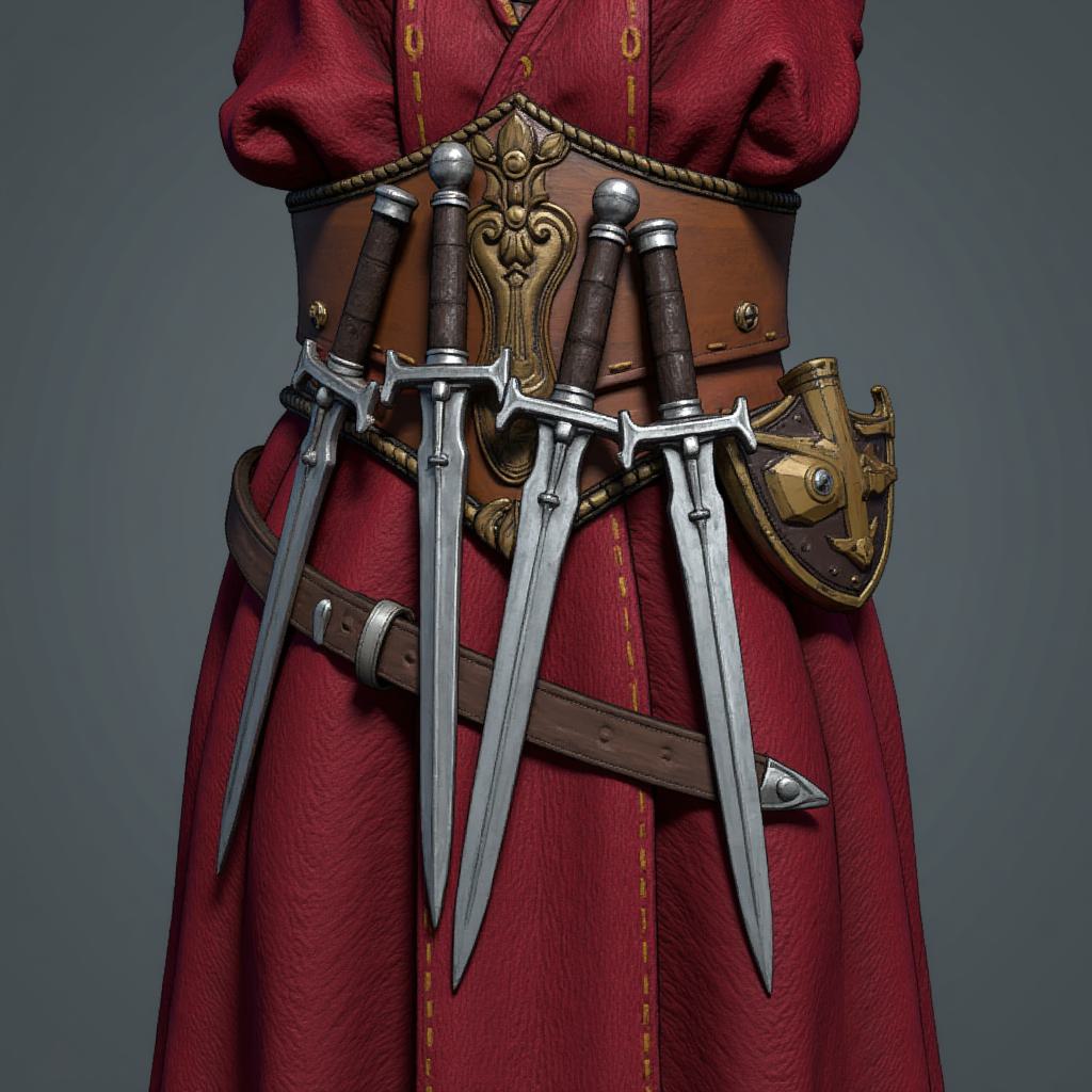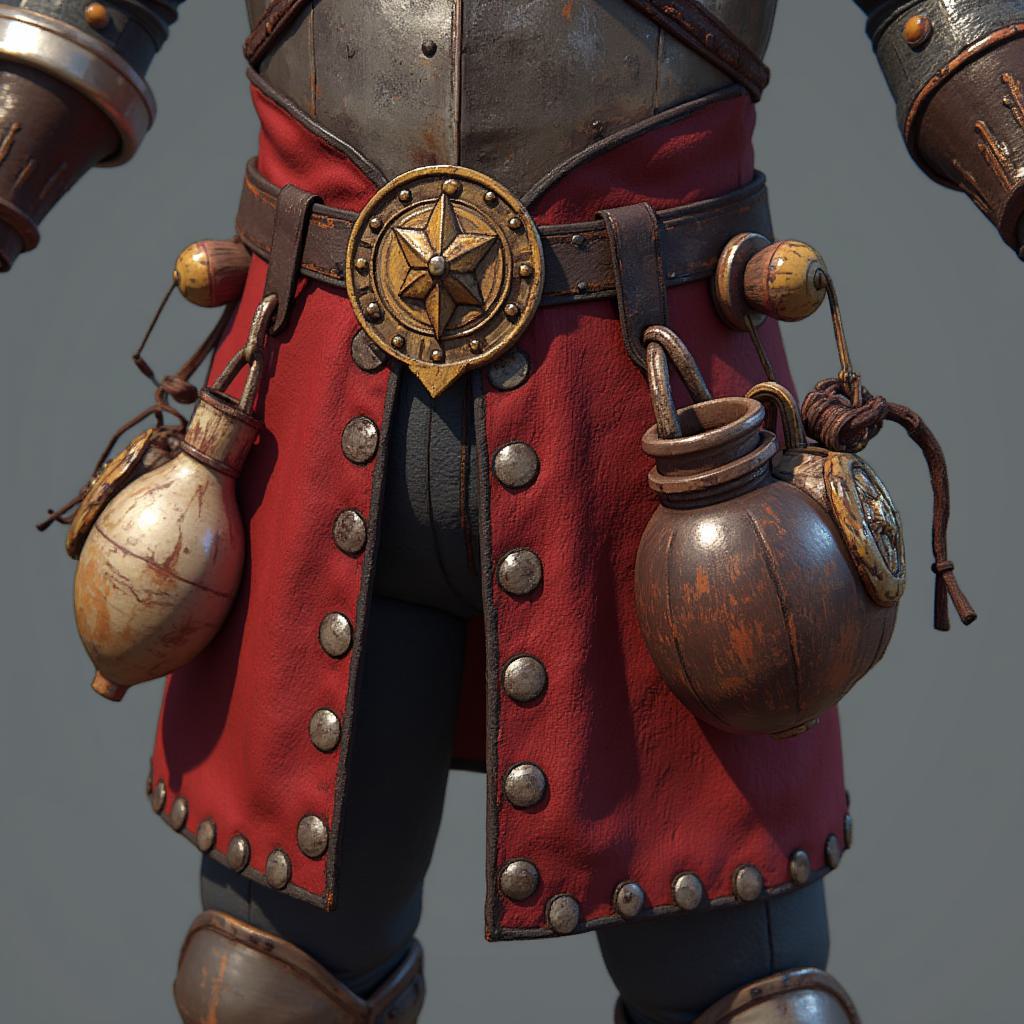 пояс рыцаря с кошельками, эликсирами и бомбами
