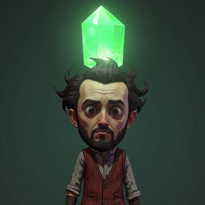 Низкокачественные текстуры и модель персонажа. Старая игра 00-х. Над головой персонажа - зелегый кристалл. Плохая графика