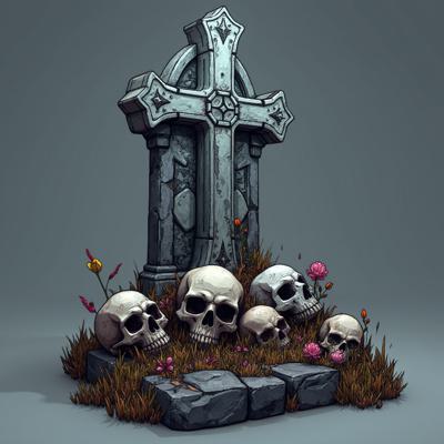 Надгробная плита с черепами, крестом. Стиль демонический, хеллоуин