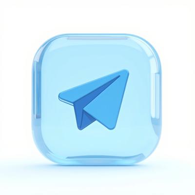 Стеклянная голубая фигура логотипа Telegram. Белый фон