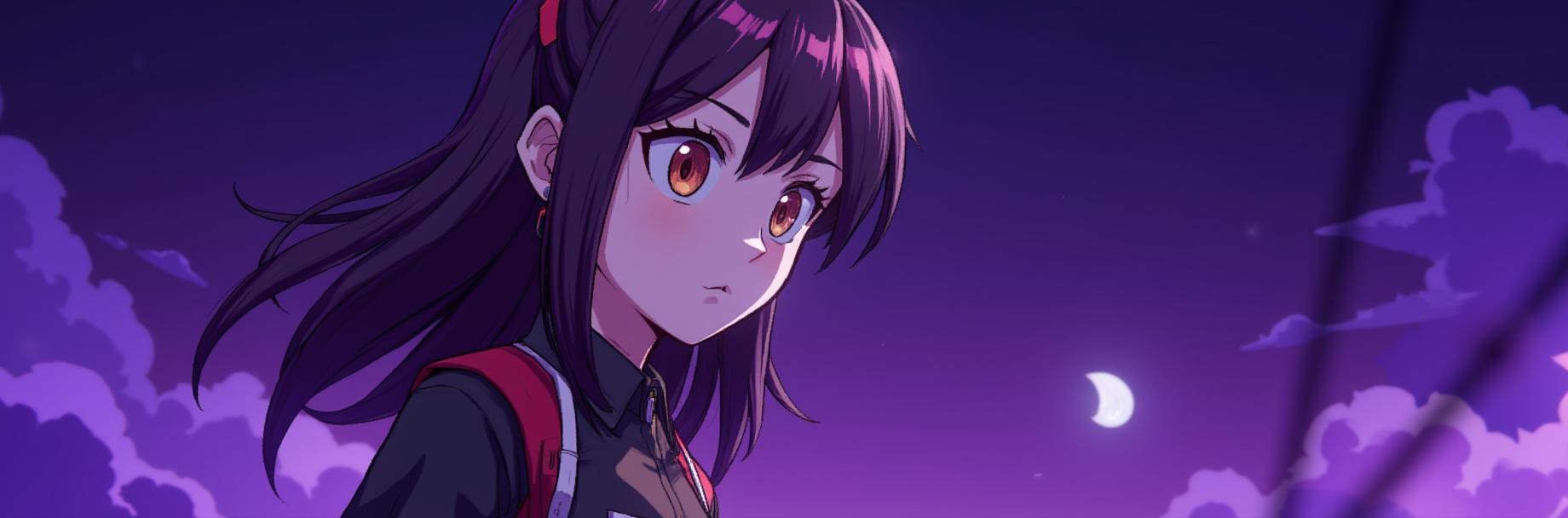 up-angle, close-up,sci-fi in deset action battle trailer, night, modern anime drawing, purple gradient, in the first person