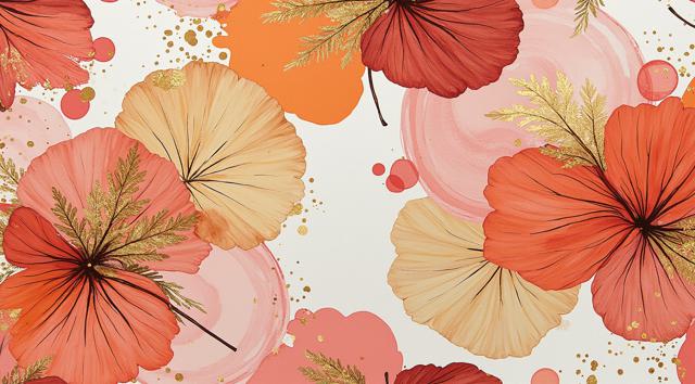 , "Создайте завершенный паттерн, сочетающий элементы хохломы и матрёшек. Используйте яркие золотые и красные цвета, изображая традиционные цветы и листья в стиле хохлома, а также добавьте стилизованные матрёшки разных размеров, украшенные орнаментами. Убедитесь, что узор гармоничен и насыщен, создавая атмосферу русской народной культуры."