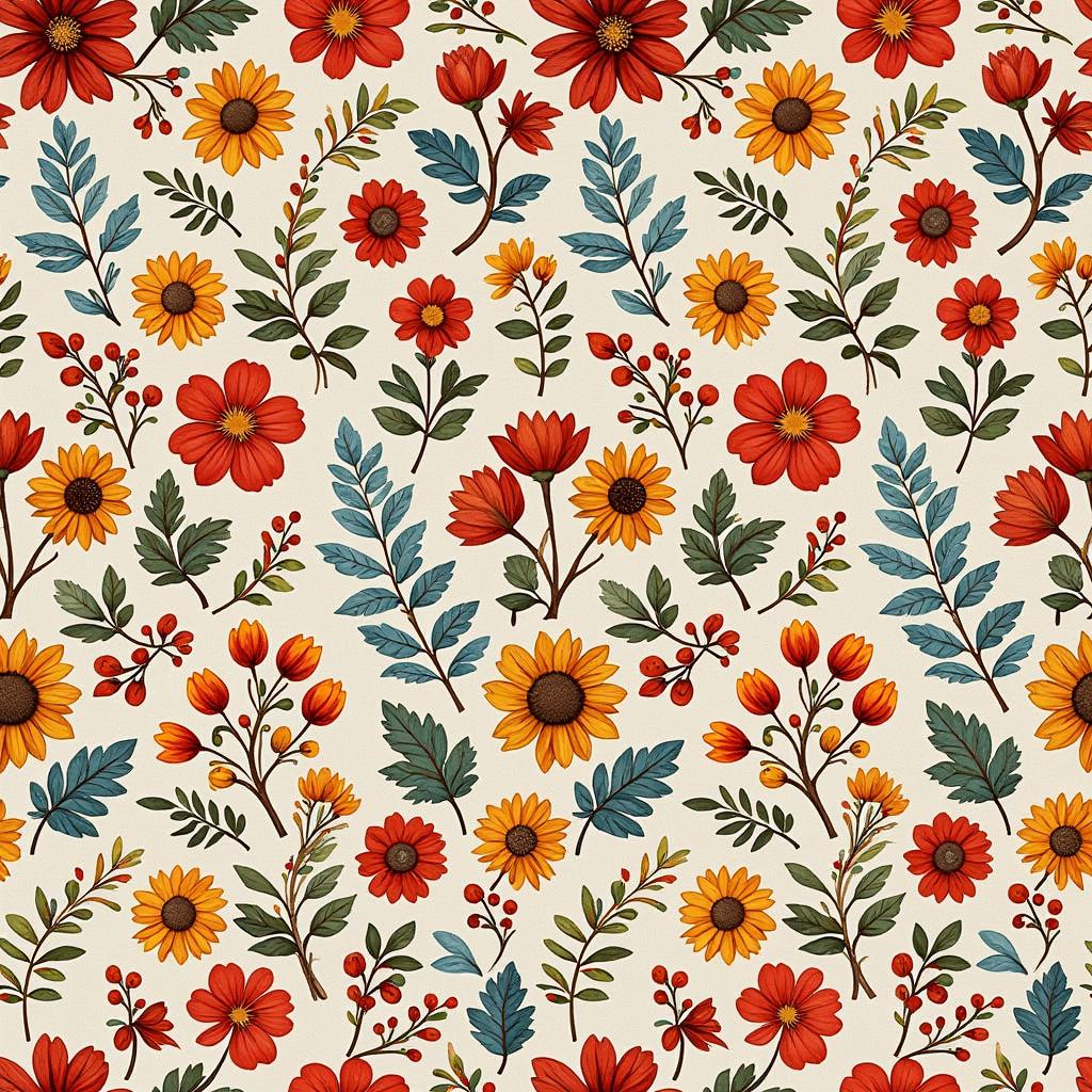 "Создайте узор, вдохновленный русским народным искусством. Используйте яркие маленькие цветы (маки, васильки) и маленькие геометрические орнаменты и симметричные завитки. Выберите насыщенные цвета: красный, синий, зеленый и золотой. Подумайте о теме, например, 'Русская зима' или 'Летний сад', и создайте гармоничный паттерн, который передаст дух традиционного русского стиля."