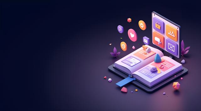 Минималистичная обложка сайта. СПРАВА — ассоциации с ПОРТФОЛИО ТВОРЧЕСКОГО СПЕЦИАЛИСТА, изобразить РАСКРЫТЫЙ АЛЬБОМ, А ИЗ НЕГО ВЫЛЕТАЮТ ЛОГОТИПЫ И ДРУГИЕ ВОЗМОЖНЫЕ ОБЪЕКТЫ. СЛЕВА — большое пустое пространство с полупрозрачным градиентом от чёрного к тёмно-фиолетовому. Стиль: цифровой минимализм, киберпанк. Цвета: фиолетовый, электрик, тёмно-серый, желтый. Вся композиция на тёмном фоне. Цифровой минимализм, неоновые акценты. Ассоциации: рост, автоматизация, стратегия, результат.