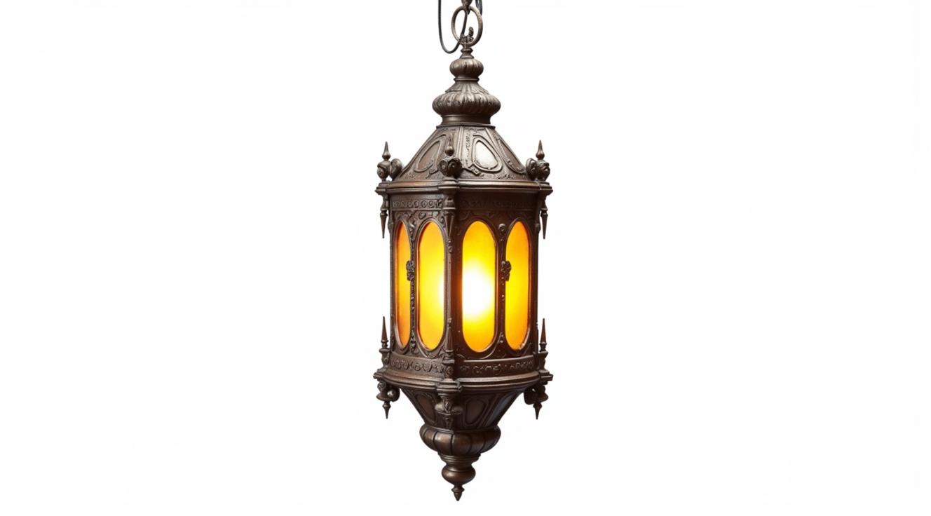 Старинный фонарь в стиле готики из дерева и металла.