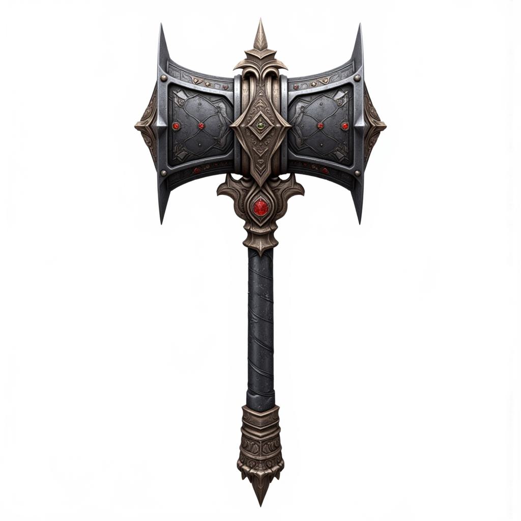 Демонический молот с узорами и орнаментом. Украшен шипами и драгоценностями