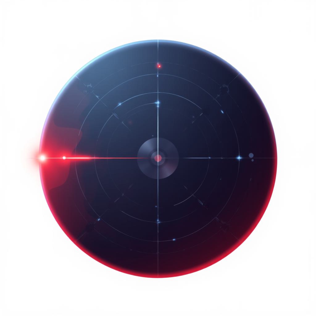 vector game UI icon, circular radar vignette, smooth gradient from deep blue to red, soft glow on edges, minimalistic flat design, clean geometry, no texture, no noise, top-down HUD style, transparent background, sharp vector lines, consistent thickness, modern multiplayer game radar overlay, high contrast, scalable SVG look