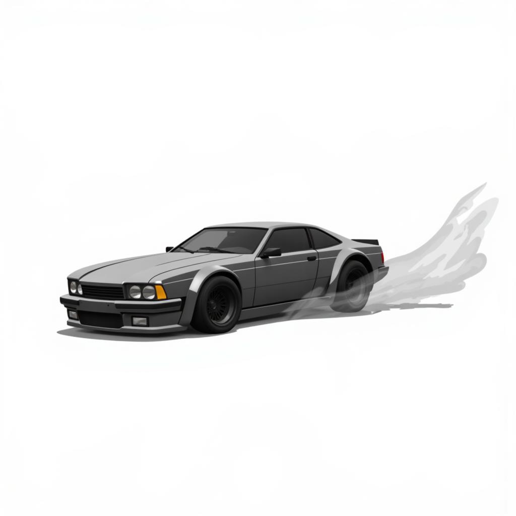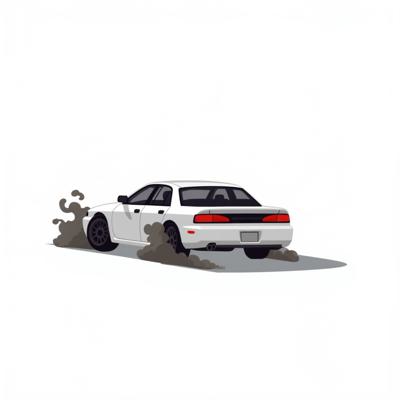 vector notification icon, car drifting away from the camera, rear view perspective, vehicle angled slightly sideways, clear sense of motion, long curved drift skid marks on the ground behind the car, minimal smoke trails following the tires, flat minimalist vector style, clean geometry, strong silhouette, consistent line weight, no texture, no realism, no gradients, UI HUD icon for racing or police game, transparent background, readable at small scale,
