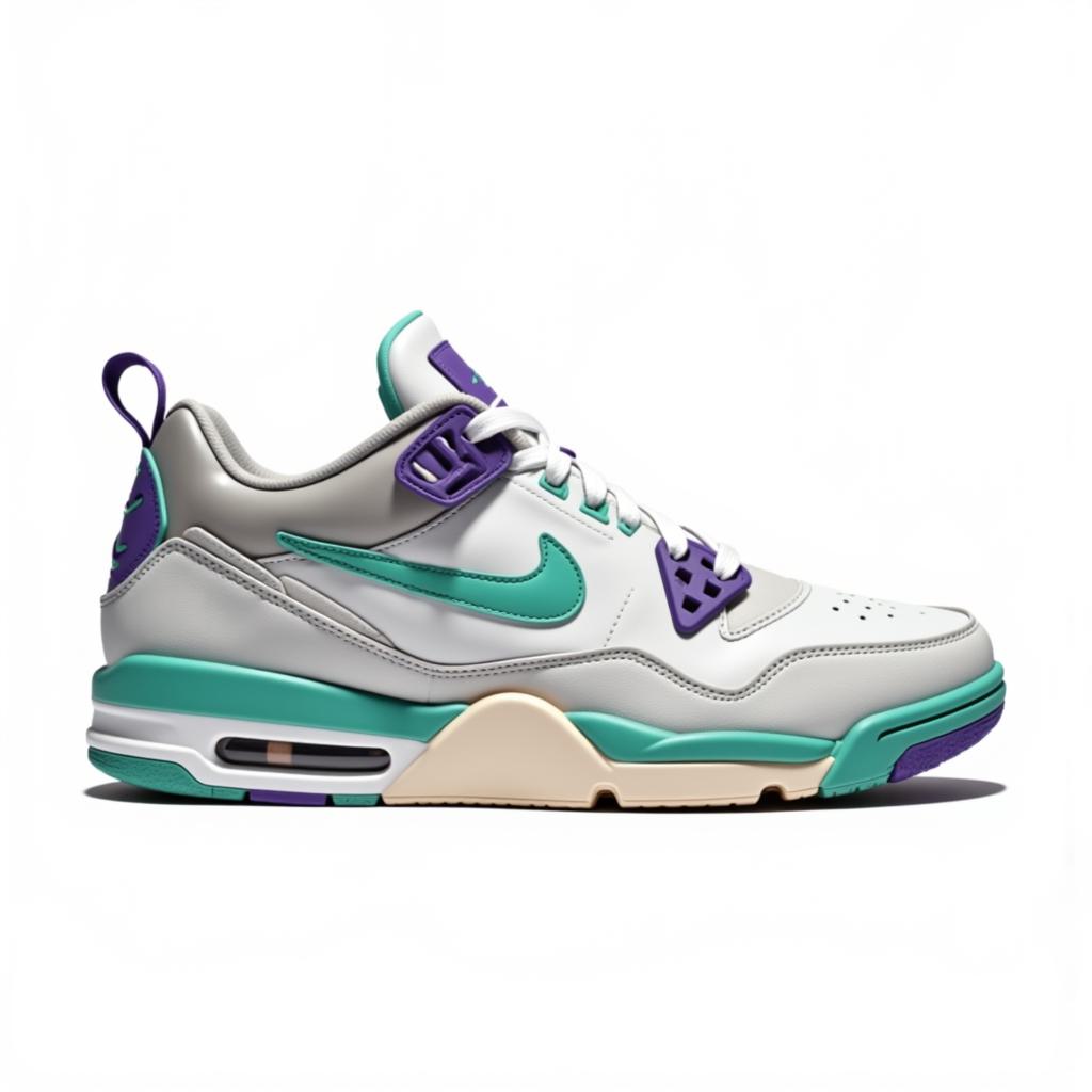 Кроссовок Nike Air, белый, фиолетовые и зеленые рисунки