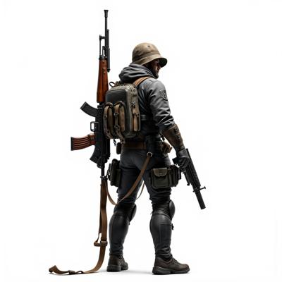 Автомат Калашникова 47 с лентой патронов. Реалистичный дарк фэнтези, готический стиль