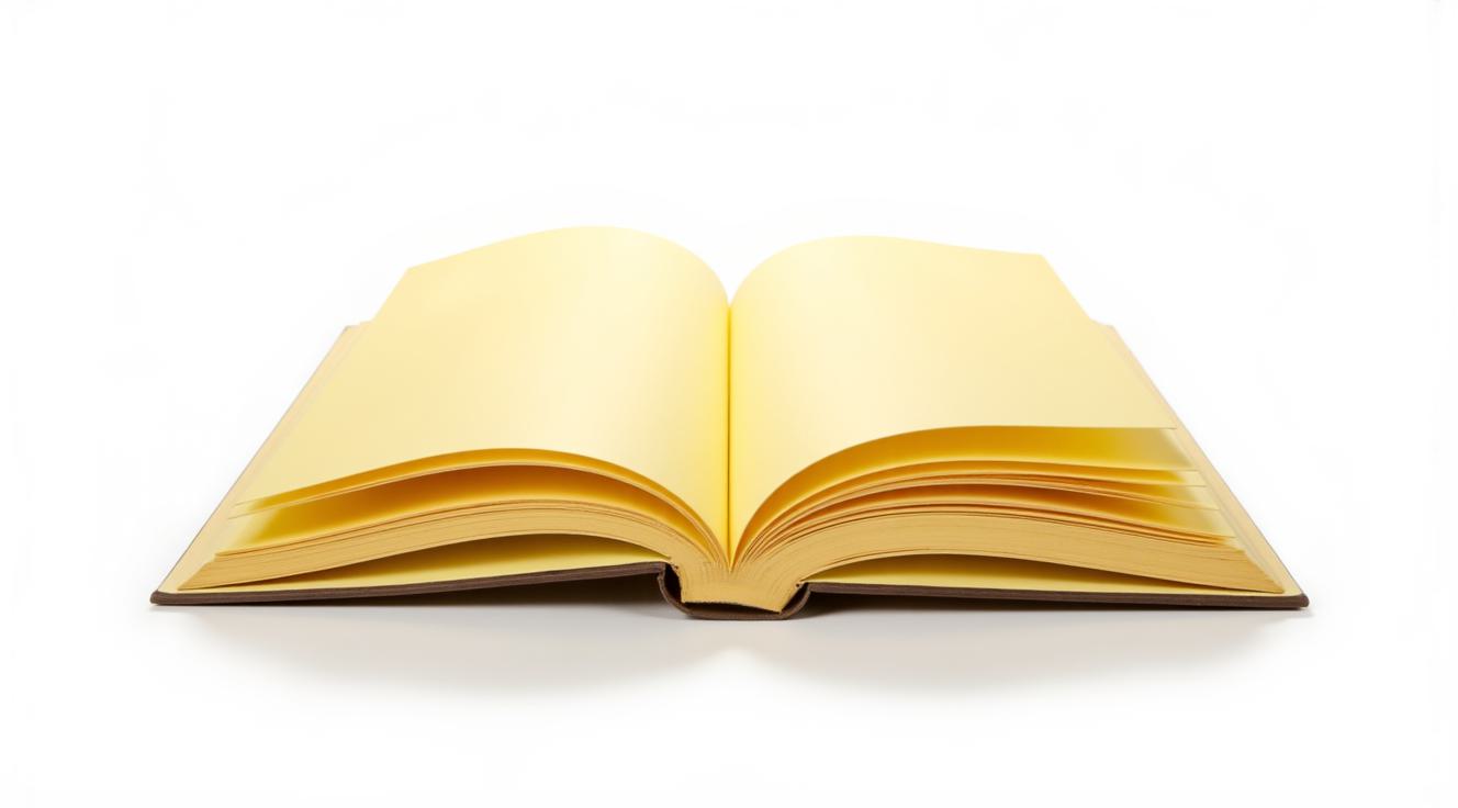 Раскрытая книга, вид сверху. Страницы желтоватые, пустые.