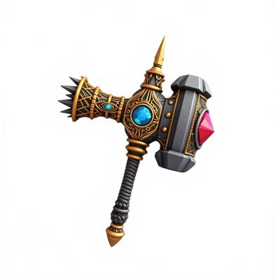 Молот гнома с узорами и орнаментом. Украшен шипами и драгоценностями