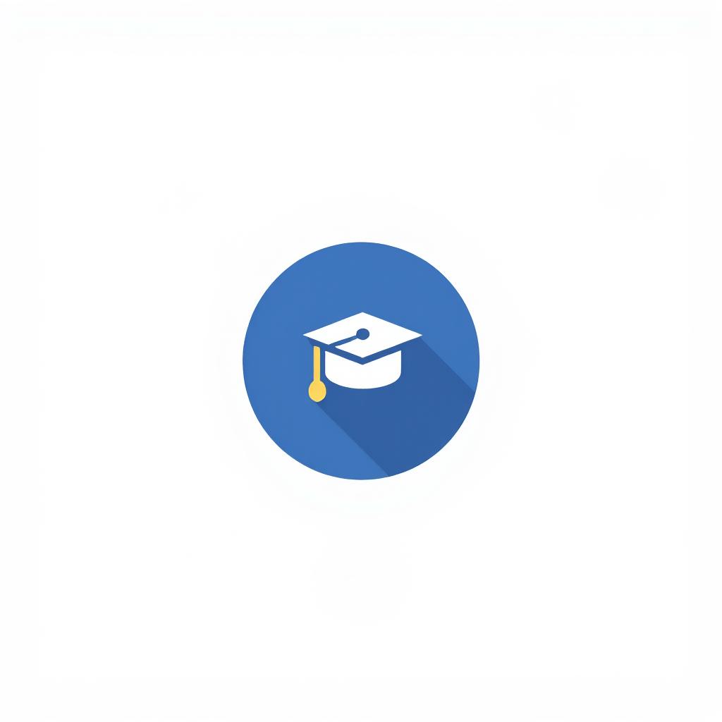 Square logo avatar for a Telegram bot named “EngMaster Pro”, clean modern flat vector style, centered icon: a stylized graduation cap combined with a speech bubble and a small “EN” monogram, blue and white color palette with a subtle gold accent, smooth shapes, high contrast, no background or simple solid background, crisp edges, professional tech-education vibe, readable at small sizes, 1024x1024