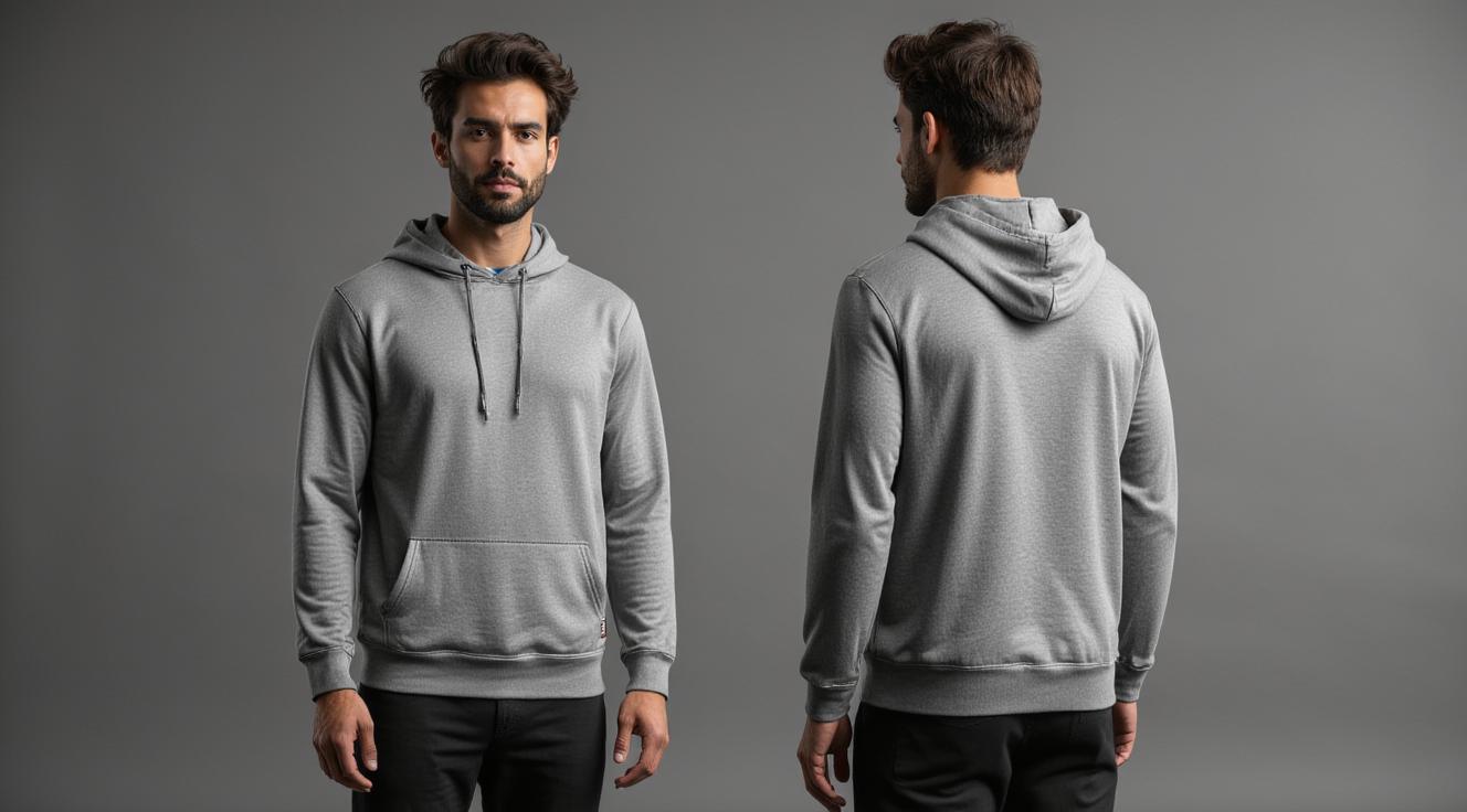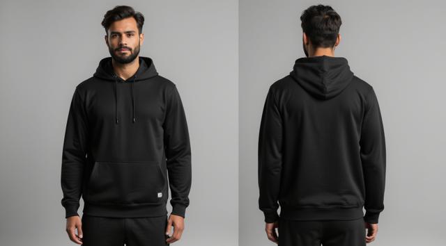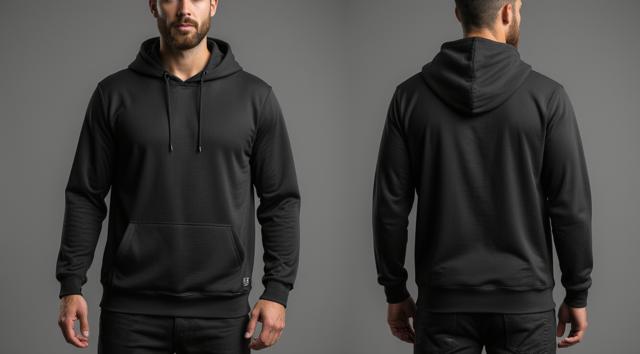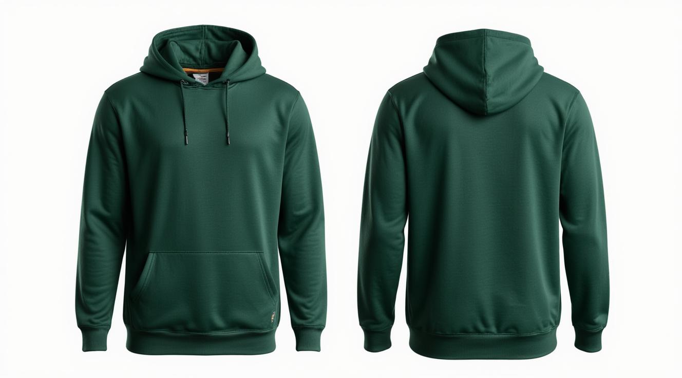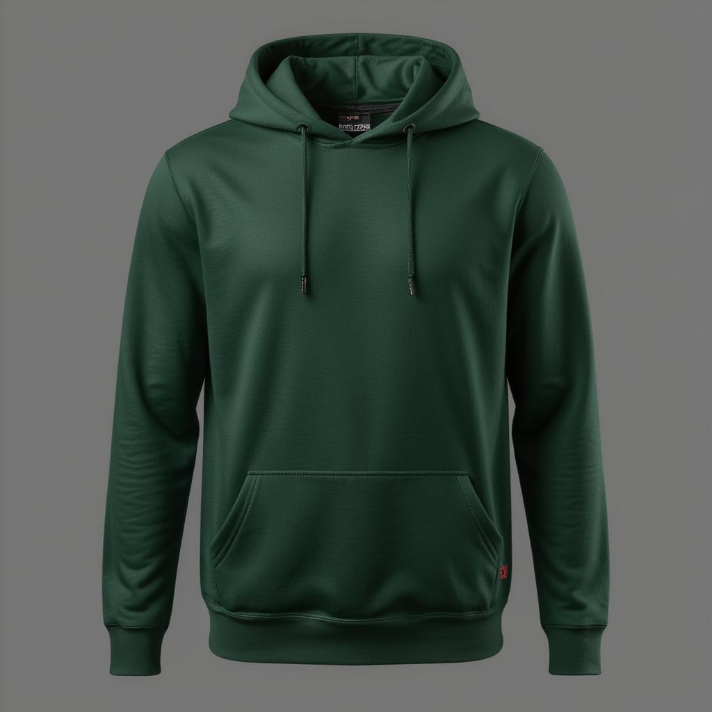 темно-зеленое худи с карманом и капюшоном спереди и сзади