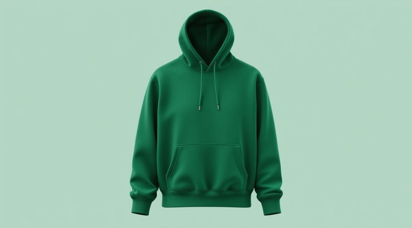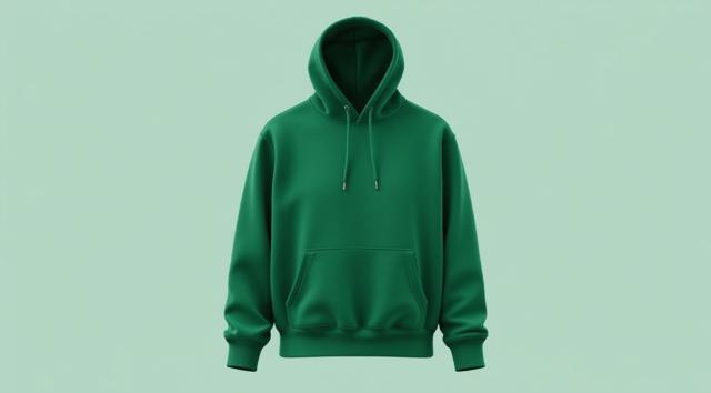 худи зеленого цвета с карманом и капюшоном без рисунка спереди и сзади