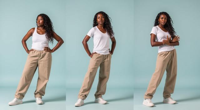 Сгенерируй Девушку в полный рост на белом фоне. Она имеет длинные рыжие волосы, которые часто заплетает в косу. Её глаза ярко-зелёного цвета и полны жизни. Она среднего роста, обладает спортивным сложением, что говорит о её активном образе жизни. Обычно она одевается в удобную спортивную одежду и кроссовки, предпочитая бледные и тёмные цвета.