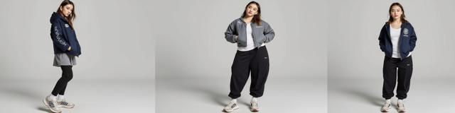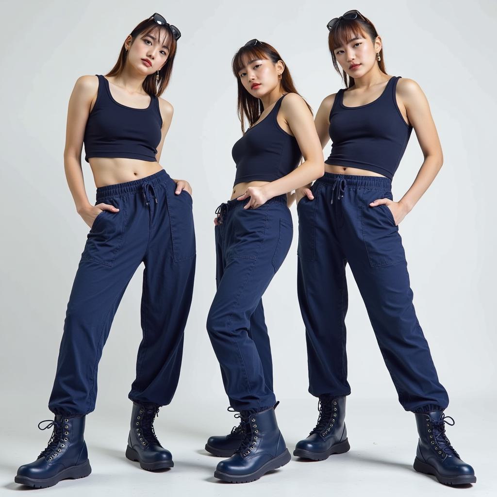 Три девушки, первая одета в темно-синий пиджак, снизу белый топ, серая юбка теннисная, колготки, носки, кроссовки модные, волосы распущенные, серёжки, легкий макияж, на пиджаке небольшая эмблема школы. Вторая девушка - серый пиджак, под ним белая футболка, джинсы черные baggy, кроссовки, прическа, макияж легкий, серёжки, пирсинг в губе. Третья девушка - темно-синие baggy джинсы, ботинки, темно-синяя кофта оверсайз с небольшой эмблемой школы, под кофтой футболка белая, волосы распущенные. , Девушки стоят на расстоянии друг от друга. реалистично