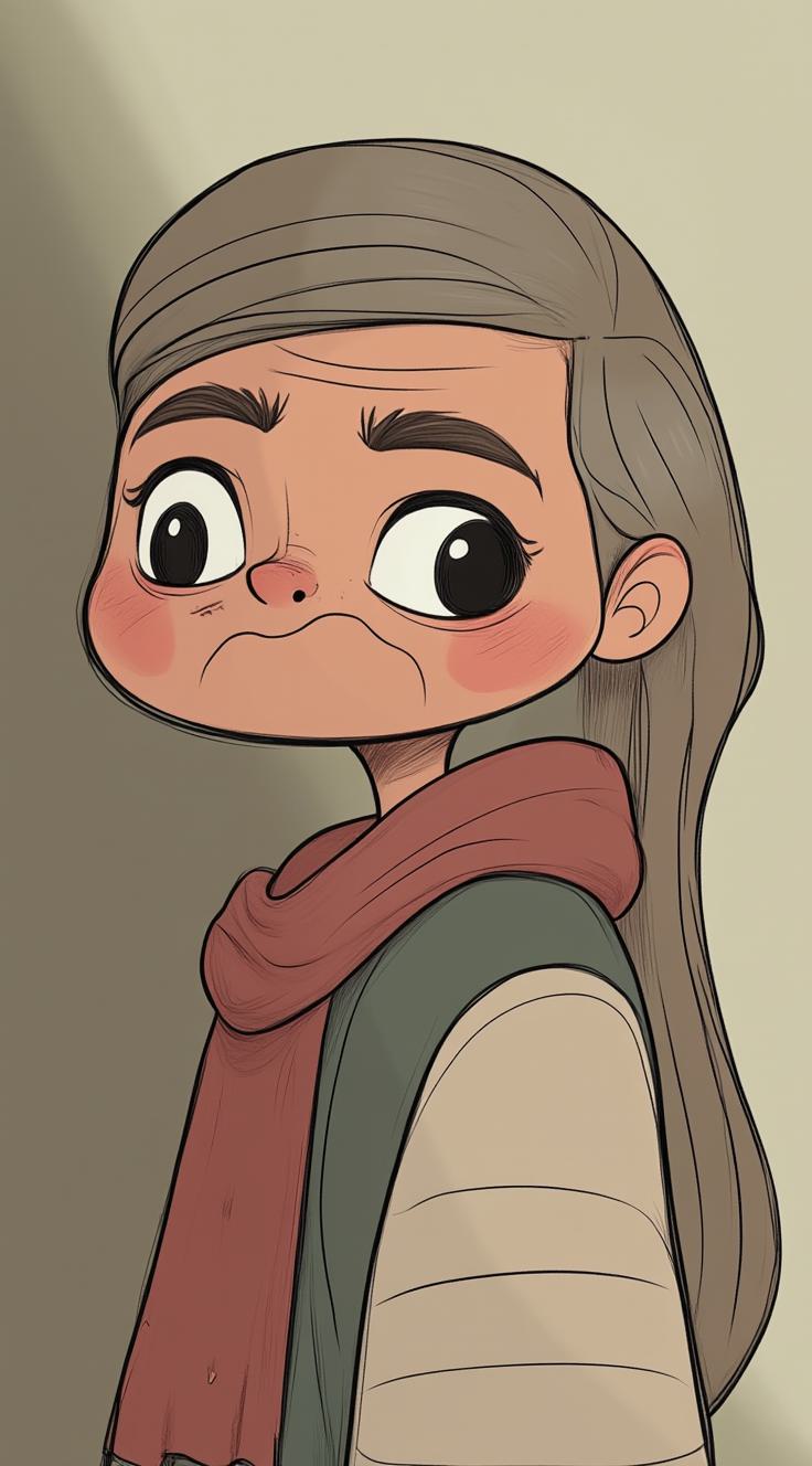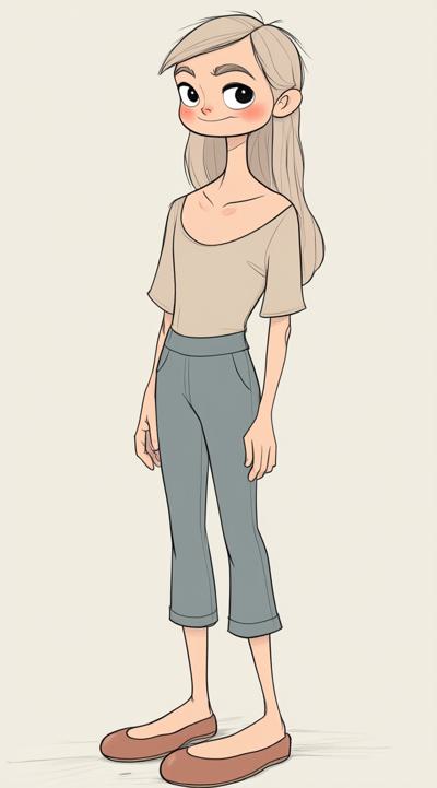 full-body character, entire figure visible from head to toes, strict front view, facing directly forward, standing straight, symmetrical pose, no angle, no tilt, no rotation,, young Slavic woman with light blonde hair and blue eyes,, neutral expression, no smile, no smirk, no cheerful emotion, calm serious face, straight relaxed mouth,, wearing a traditional Russian sarafan, long dress with decorative embroidery, white blouse with sleeves under the dress,, strictly no headwear, no scarf, no kerchief, no wreath, no hat, no hair accessories, hair fully visible, uncovered head only,, natural proportions, simplified anatomy, clean silhouette,