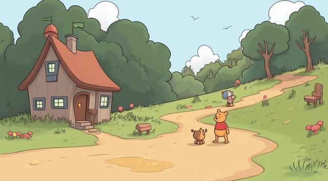 Сделай картинку похожую на ту которую я прикрепила, формат а4 альбомная, к тексту : Винни Пух , Пух, Пух,, Шел и мед нашел., Желтый мед- мишке в рот., Довольный мишка до ушей, Пошел он в гости к другу., Пяточку, Пяточку., Там пили чай с малиной, И с вкусным медом., Счастливый вечерок!, Ок-ок., Провели они ОК! Оставь место для текста