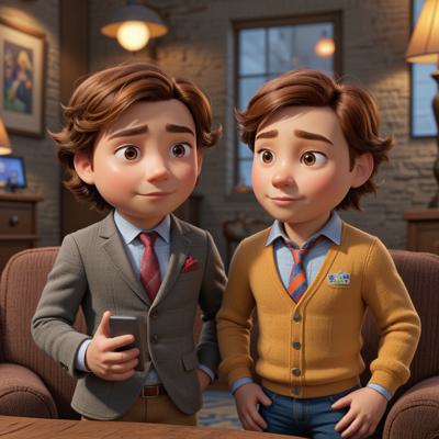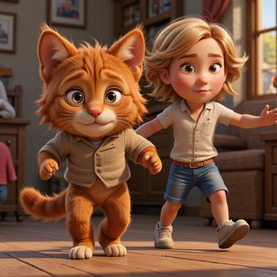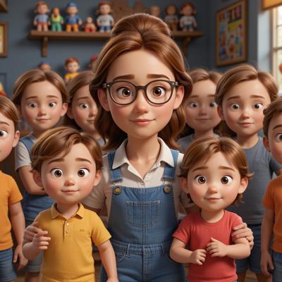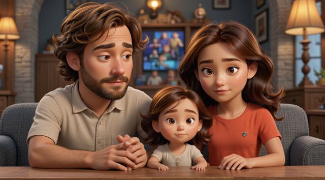Нарисуй веселую, забавную семейную сцену. В семье — отец с тёмно-русыми волосами и светлой щетиной, мама с тёмно-каштановыми волосами и нарощенными ресницами. Старшая дочь — 24 года, у неё длинные тёмные волосы и маленькое лицо. Младшая дочь — 17 лет, с короткими тёмно-русыми волосами. Атмосфера дружелюбная и смешная, все улыбаются, можно добавить немного юмора в выражения лиц или позы.